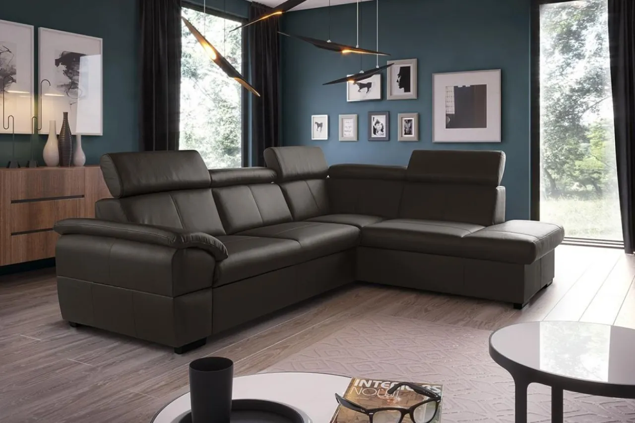 Brązowy narożnik ze skóry naturalnej to idealny wybór do eleganckich wnętrz. Ustaw go w centralnym miejscu pokoju dziennego, a będzie prawdziwą wizytówką domu.