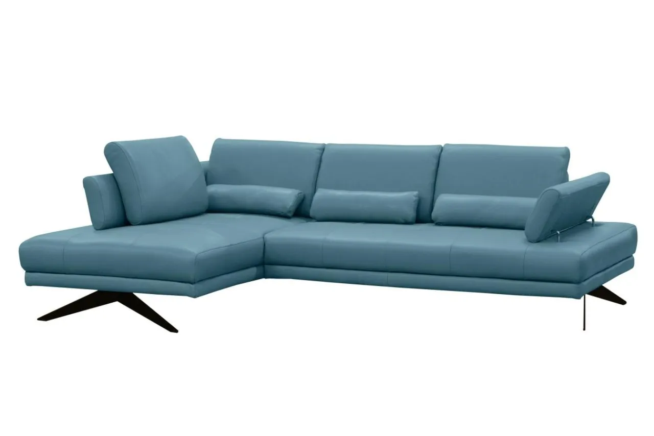 Wykończenie skórą naturalną to prestiż i elegancja. Narożnik LAZUR dodatkowo zaskakuje nietypową – niebieską barwą.