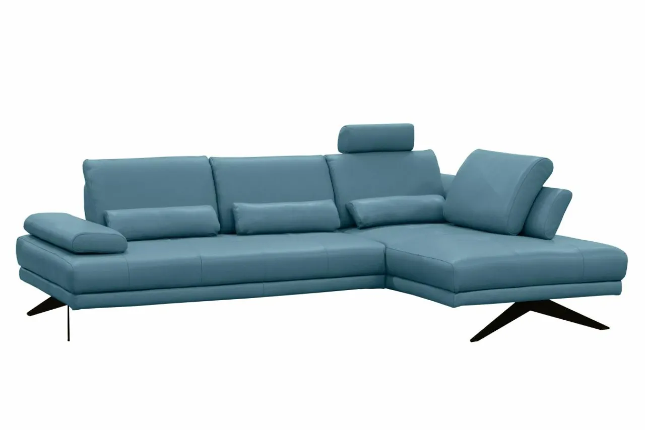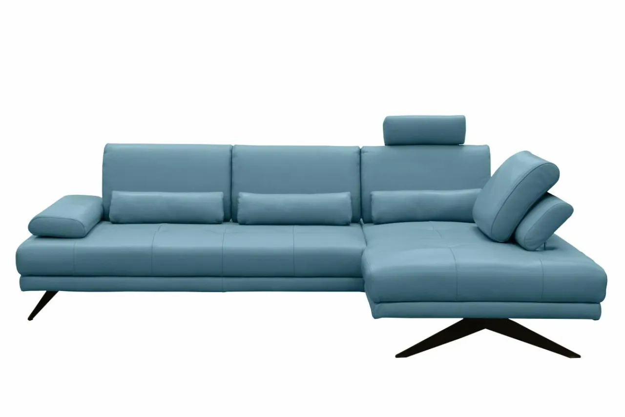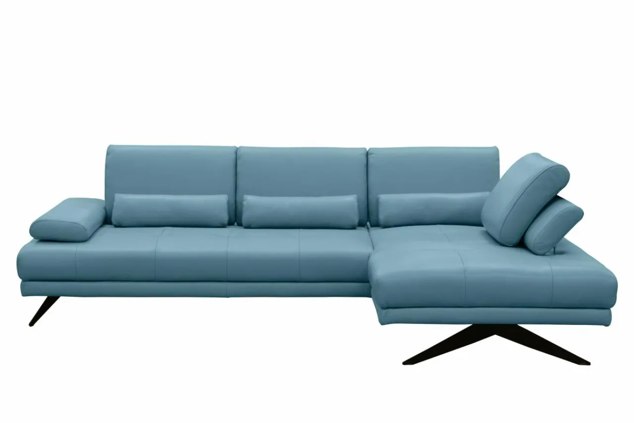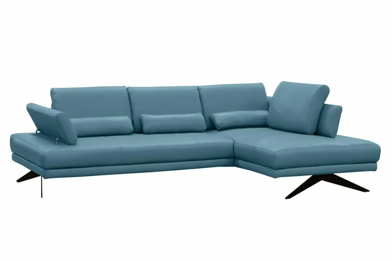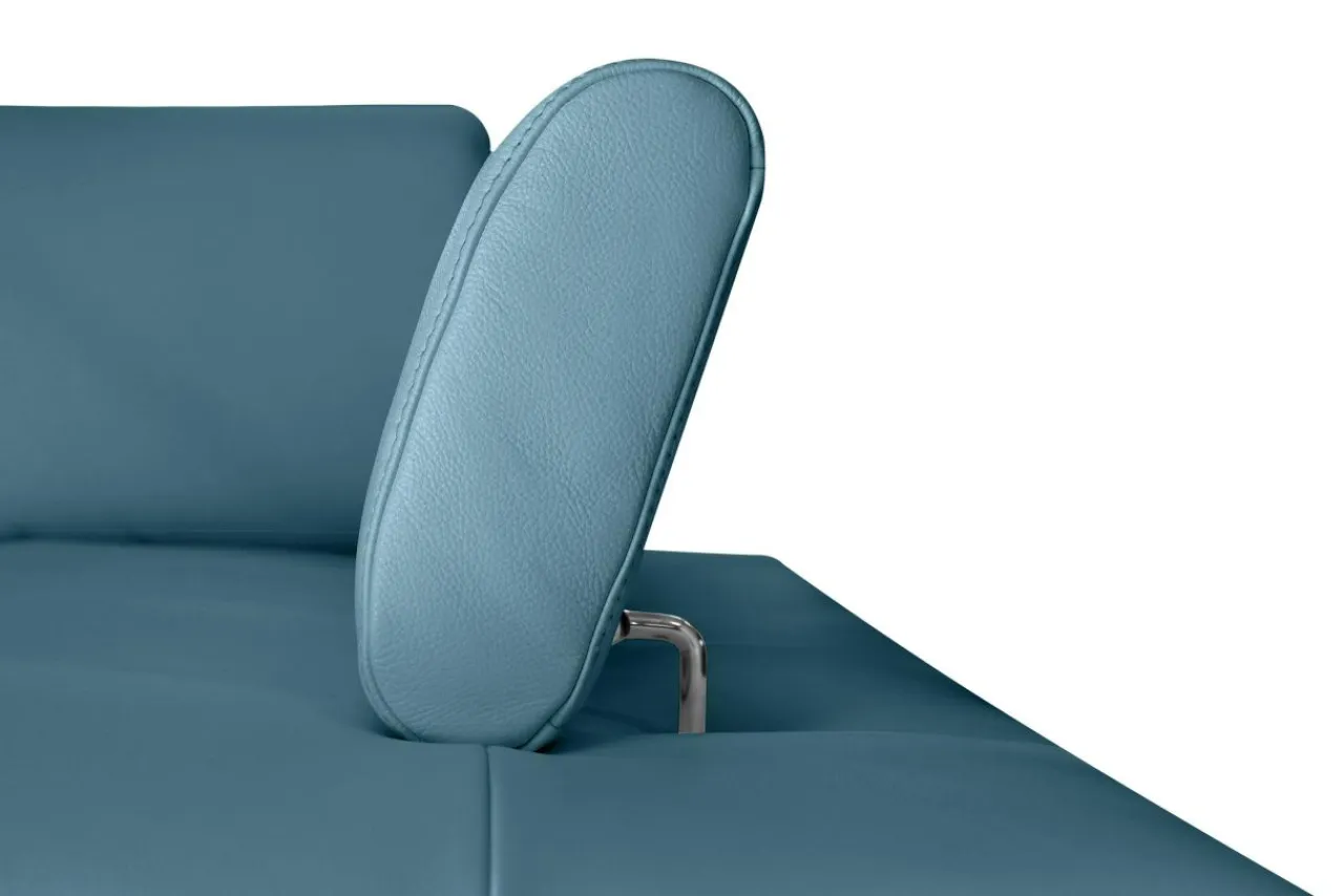 Wykończenie skórą naturalną to prestiż i elegancja. Narożnik LAZUR dodatkowo zaskakuje nietypową – niebieską barwą.