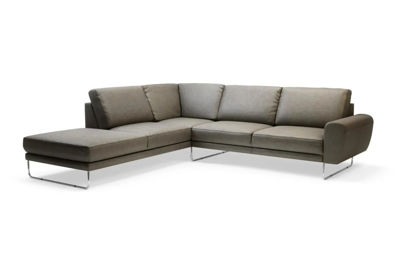 Narożnik SPRING został wykończony skórą naturalną NATUR w szarym odcieniu. Zachwyca jasnym – niejednolitym wykończeniem.