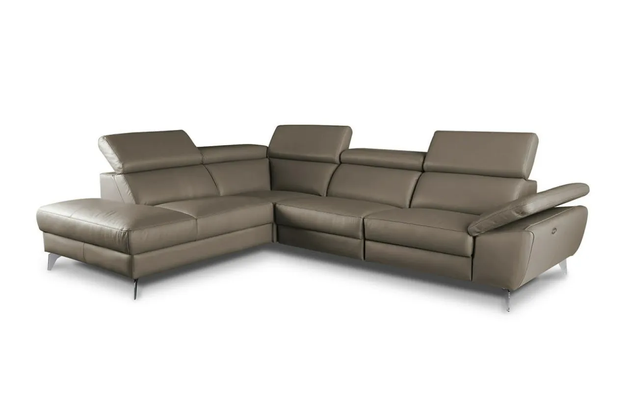 Tapicerka narożnika została pokryta skórą naturalną z kolekcji DOLLARO – model SMOG.