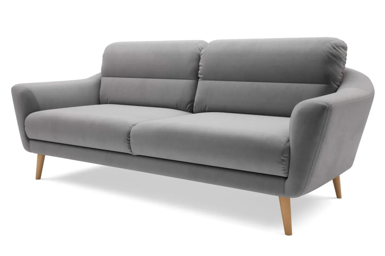 Sofa posiada wysokie drewniane nóżki, które idealnie łączą się z designem całej bryły.