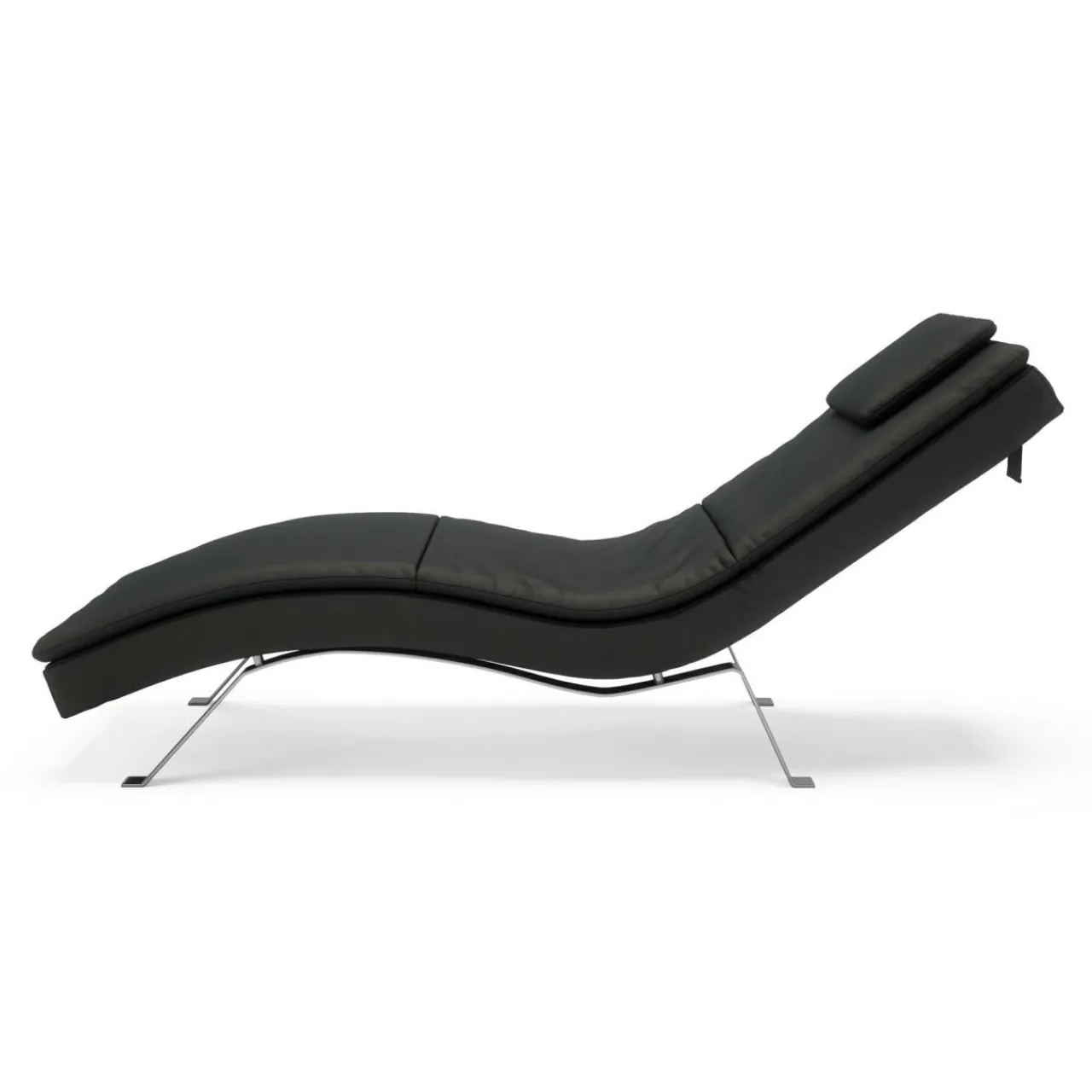 Tapicerka wykonana jest z eleganckiej i grubej skóry naturalnej DOLLARO NERO i obszyta nicią pod kolor. Szare nóżki malowane metodą proszkową świetnie dopełniają całości i podkreślają modernistyczny charakter mebla.