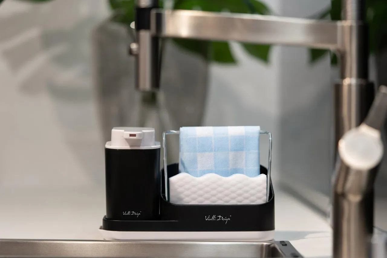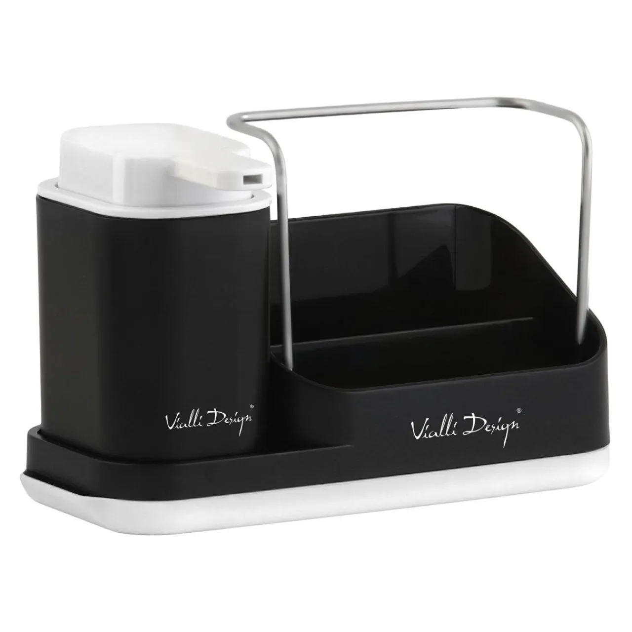 Vialli Design Organizer kuchenny z dozownikiem czarny LIVIO DUO