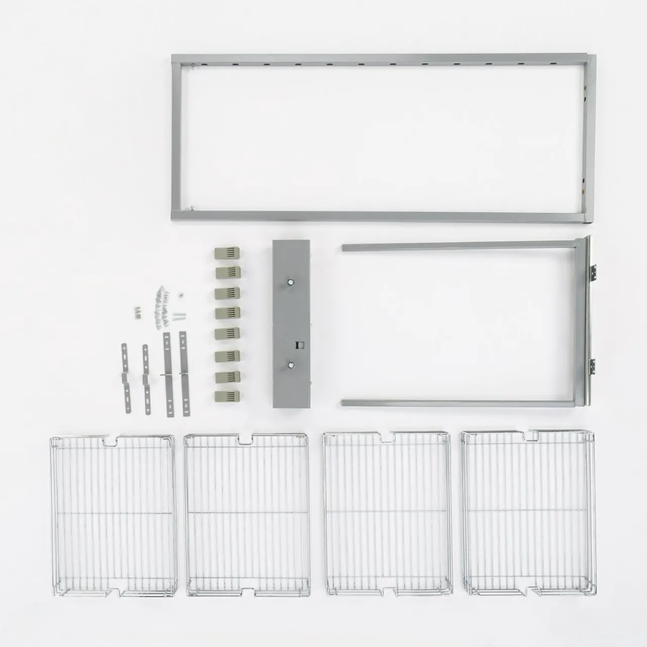 Zawiera ramę, stelaż i 4 kosze, które zamontujesz wewnątrz szafki. Specjalnie zaprojektowane uchwyty oraz profilowany kształt koszy pozwala na ich precyzyjne ustawienie i zwiększenie powierzchni, która możesz zagospodarować.