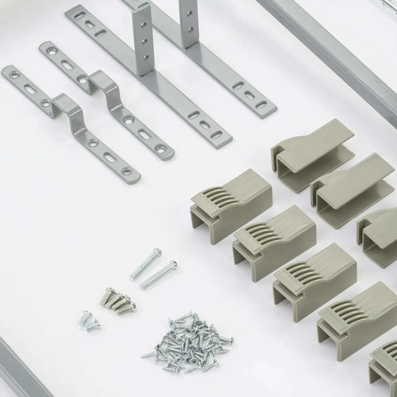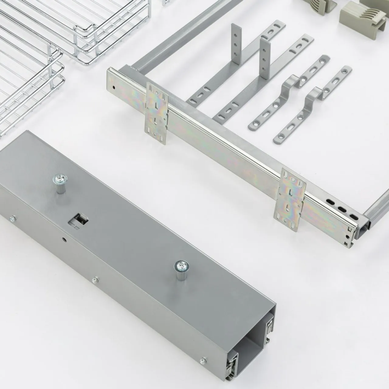Zawiera ramę, stelaż i 6 koszy, które zamontujesz wewnątrz szafki. Specjalnie zaprojektowane uchwyty oraz profilowany kształt koszy pozwala na ich precyzyjne ustawienie i zwiększenie powierzchni, która możesz zagospodarować.