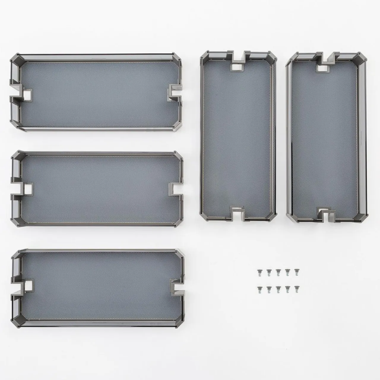 Zestaw zawiera 5 koszy bez stelaża/ramy. Aby uzyskać konstrukcję gotową do zamontowania należy dokupić pozostałe elementy.