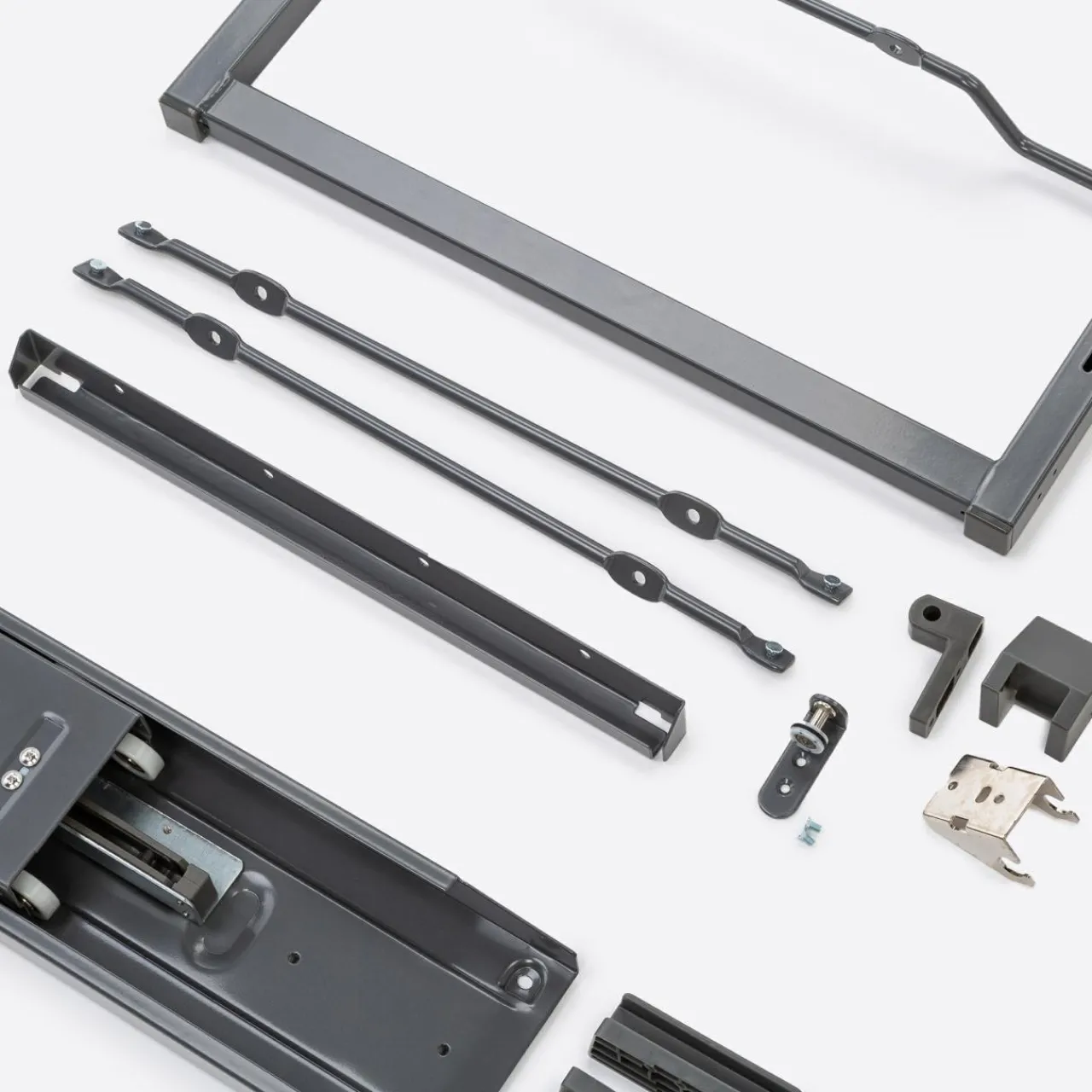 Wszystkie te elementy zaprojektowane ze smakiem i dbałością o detale, zostały przystosowane do montażu na wysuwanych prowadnicach.