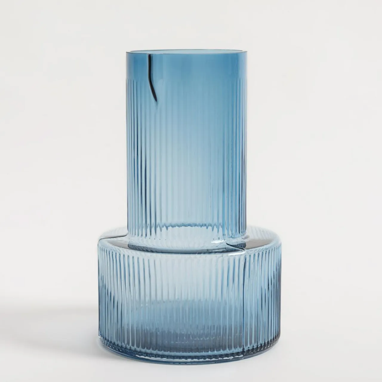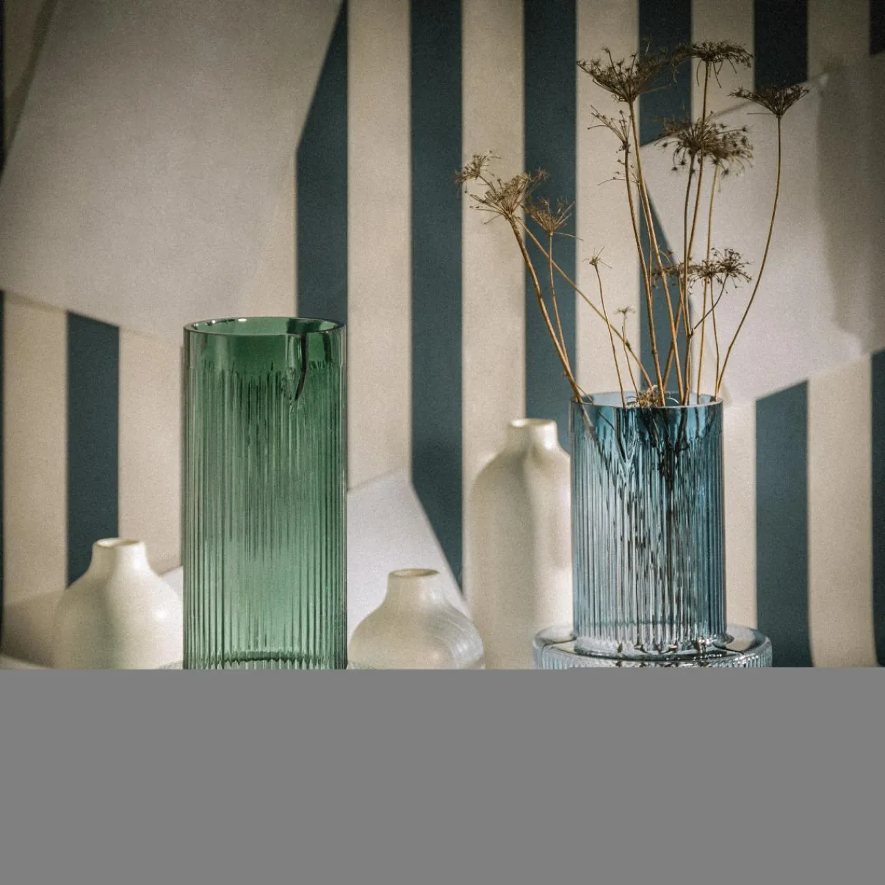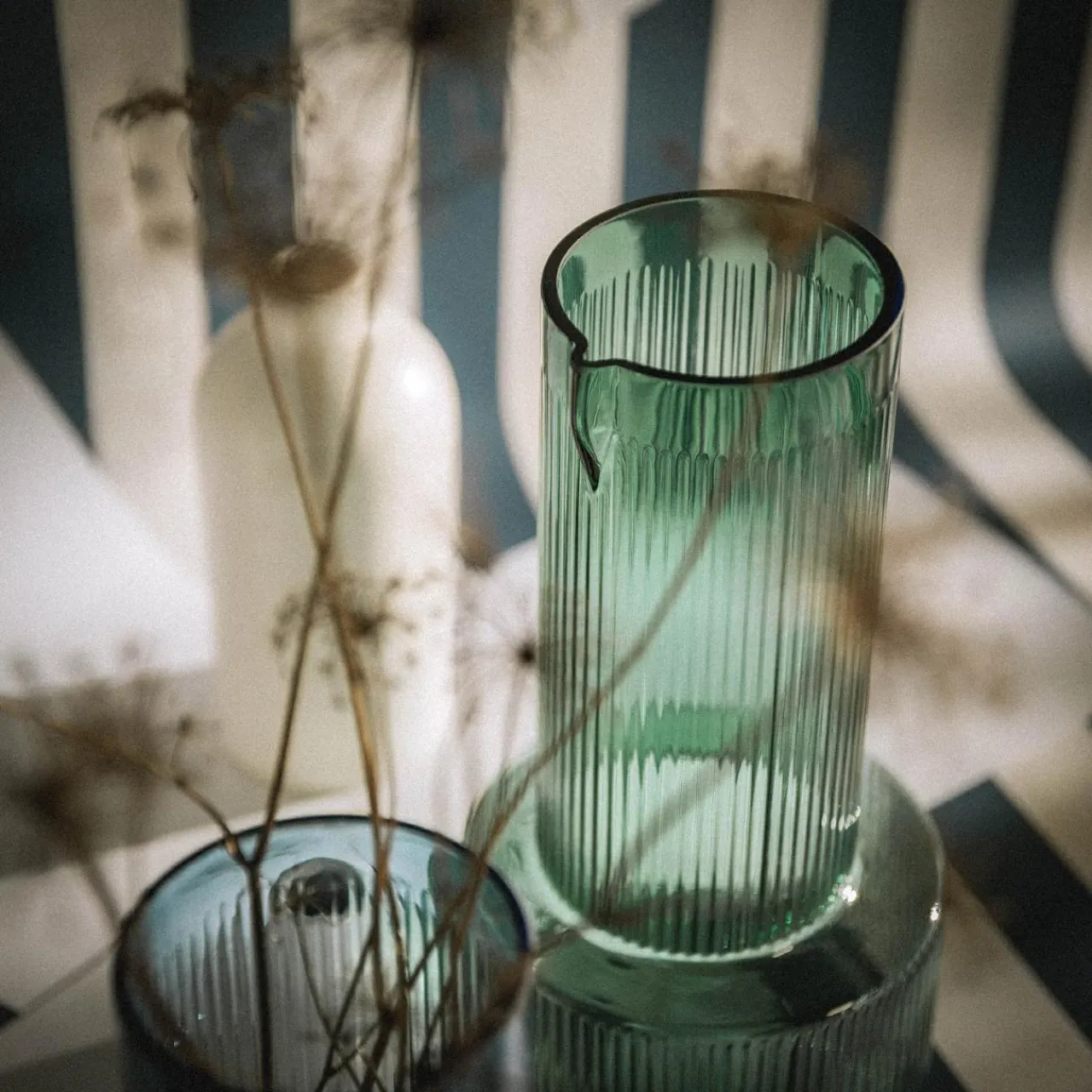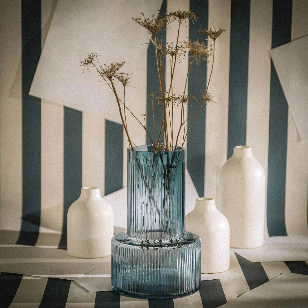 Wazon został wykonany ze szkła o ozdobnych żłobieniach lekko odbijających i załamujących światło, co jeszcze bardziej wyeksponuje blat Twojego stołu czy komody. Zgaszony niebieski kolor jest na tyle uniwersalny, że odnajdzie się w wystrojach nowoczesnych, ale też rustykalnych czy boho.