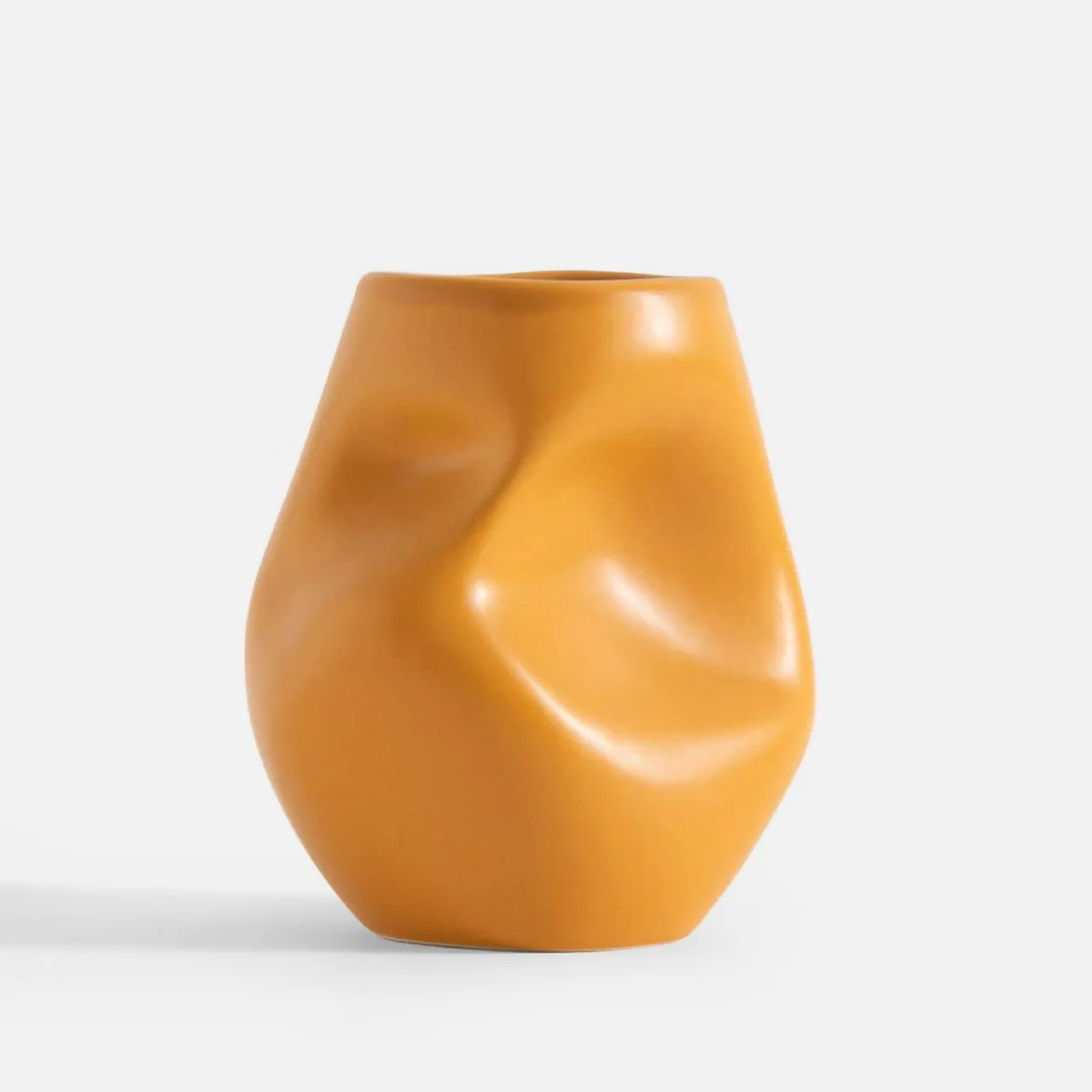 Wazon o gniecionej formie z pewnością zaskoczy miłośników oryginalnego designu. Marszczona faktura przyciąga wzrok i sprawia, że wazon sam w sobie staje się ozdobą wnętrza. Wysoki na 15 cm pozwoli Ci wyeksponować żywe kwiaty lub suche trawy. Zaaranżowany na stole w jadalni, komodzie w przedpokoju, czy półce w salonie – będzie ożywiał przestrzeń. Dostępny w kilku kolor – skompletuj wszystkie i stwórz oryginalną aranżację wnętrza.
