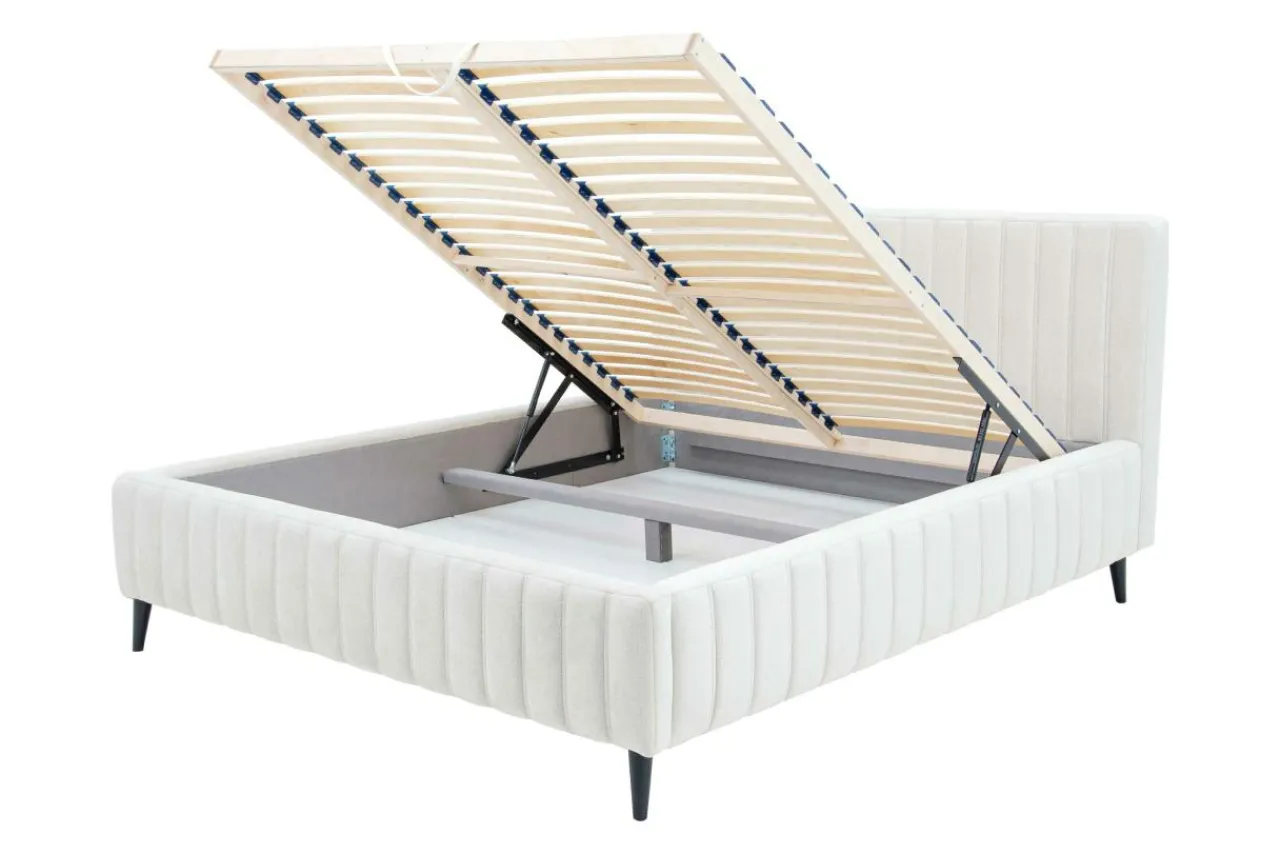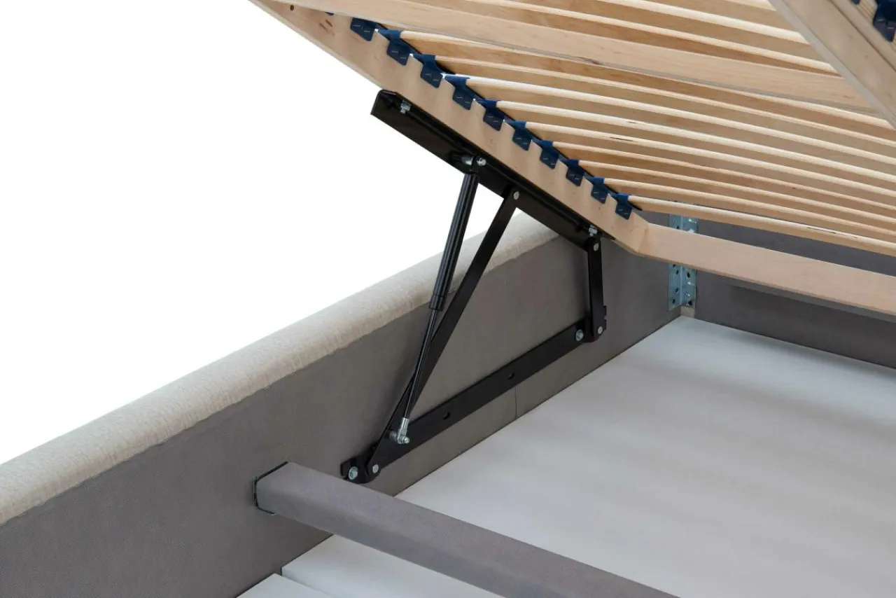 - Stelaż można podnieść, by dostać się do pojemnika na pościel. w którym szybko i wygodnie schowasz swoje koce oraz poduszki.