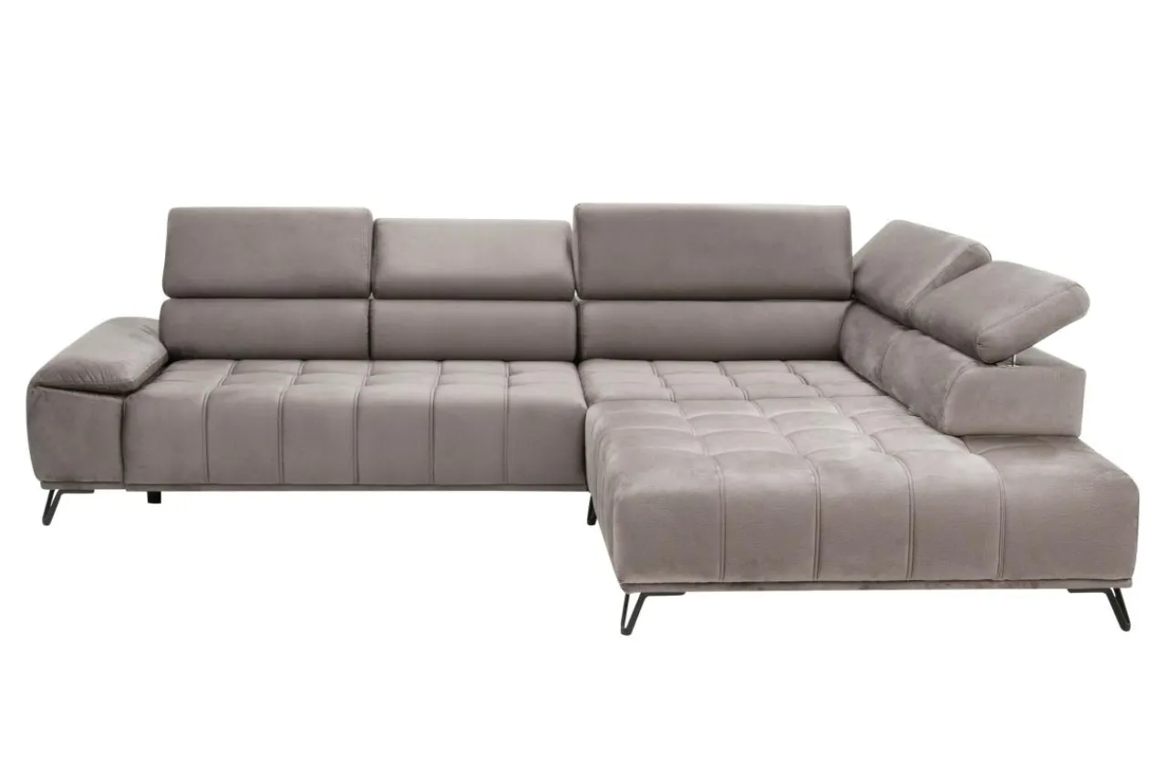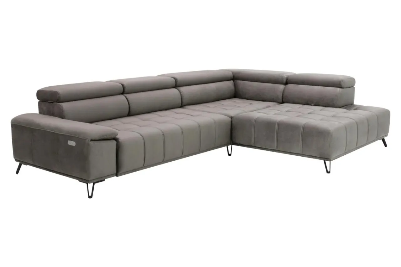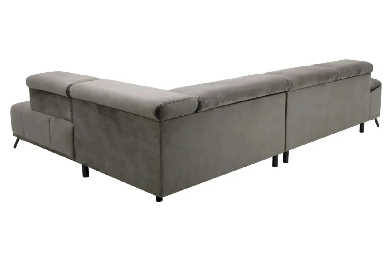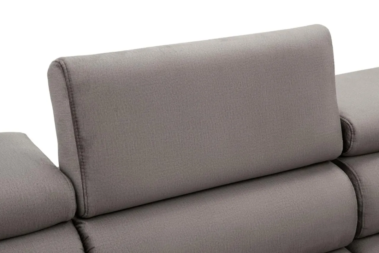W narożniku PALLADIO L elegancja współgra z komfortem. Siedzisko zostało wypełnione piankami, pasami elastycznymi i sprężyną falistą. Konstrukcja mebla oparta została na wysokich metalowych nóżkach w czarnym kolorze. Siedzisko zdobi ozdobne pikowanie, natomiast delikatnie profilowane oparcia zwieńczone są 5 regulowanymi zagłówkami.