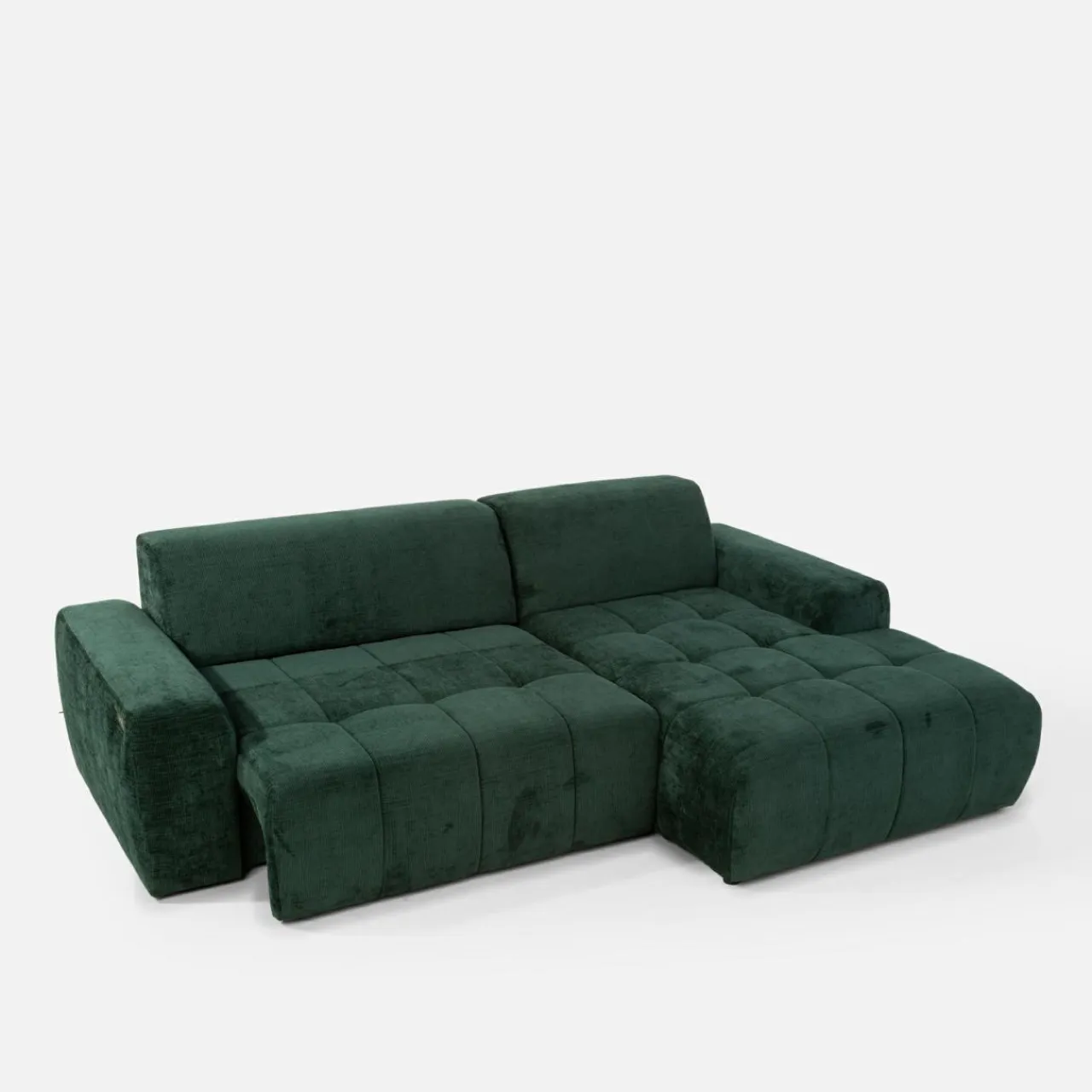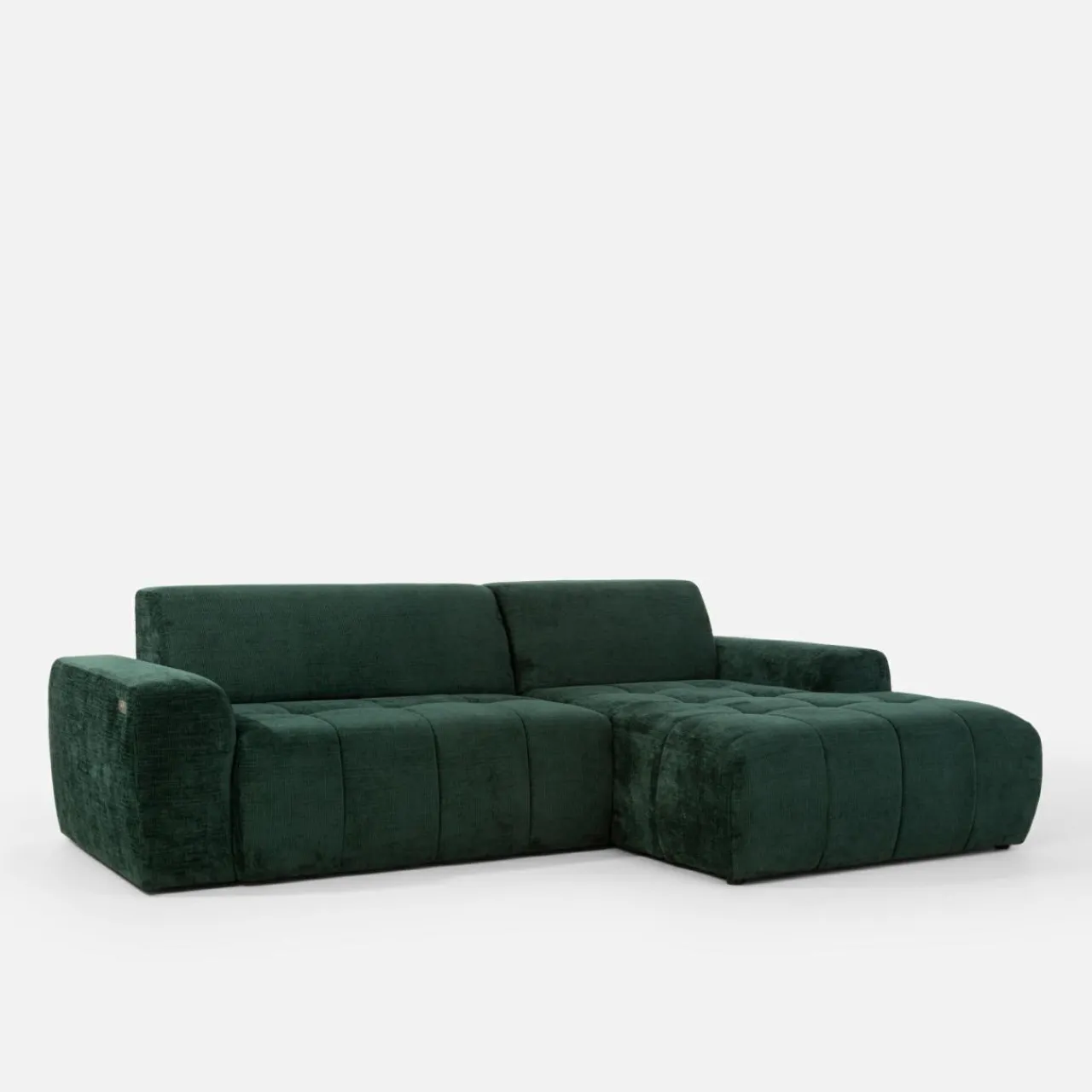 Głęboka, butelkowa zieleń narożnika SAVINON S to wyrazisty akcent, który nada Twojemu wnętrzu charakteru. Miękki sztruks zapewni przytulność, a elektryczna regulacja głębokości siedziska (do 27 cm) pozwoli na relaks dopasowany do Twoich potrzeb.