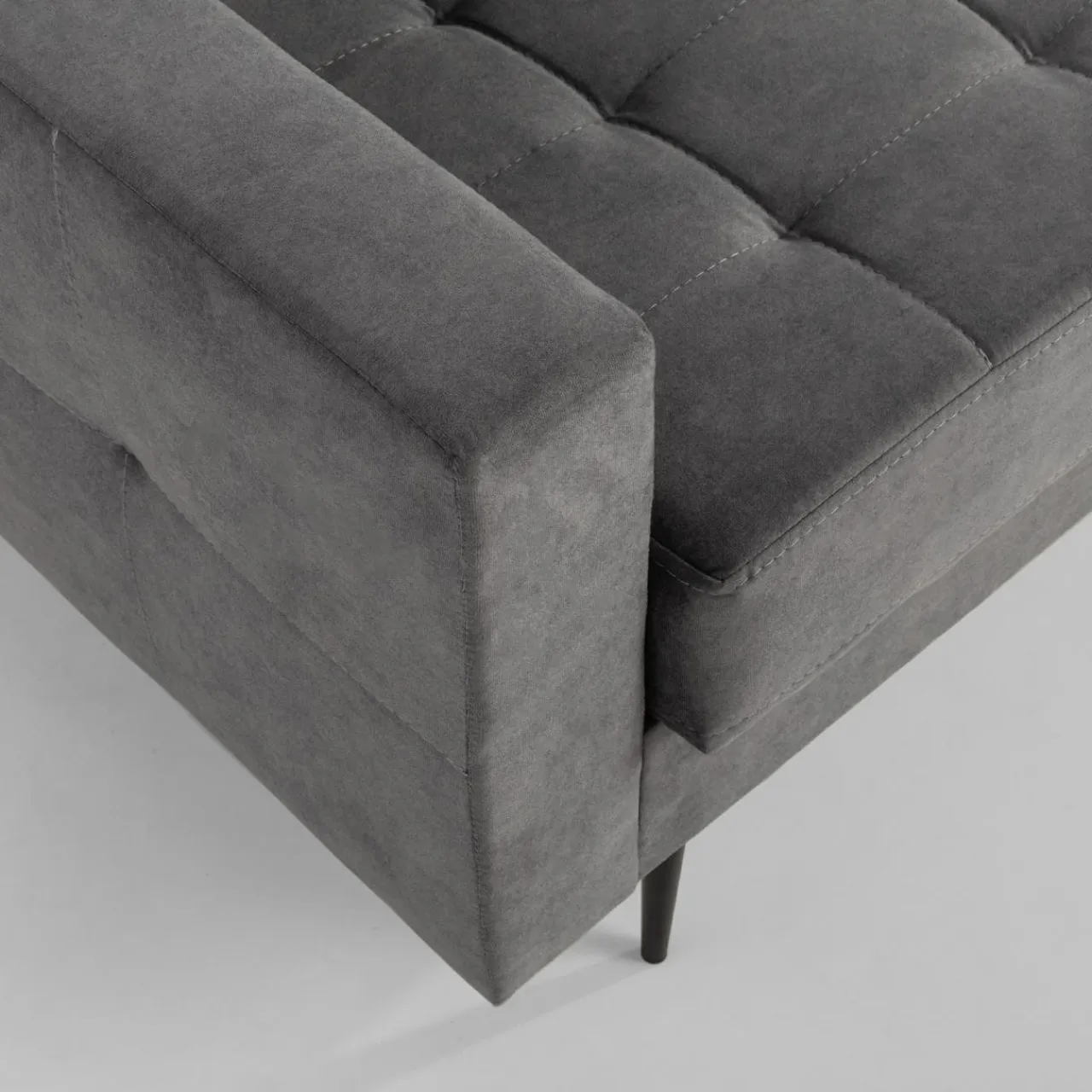 - Szary welwet z pikowaniami podkreśli elegancki wystrój wnętrza.