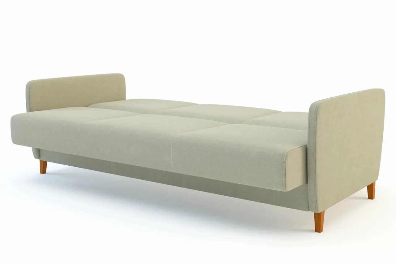 Dzięki przeszyciom i zaokrąglonym rogom przypomina niewielką sofę. Jednak, jak przystało na wersalkę jest to mebel funkcjonalny i uniwersalny, dlatego w razie potrzeby można ją rozłożyć.