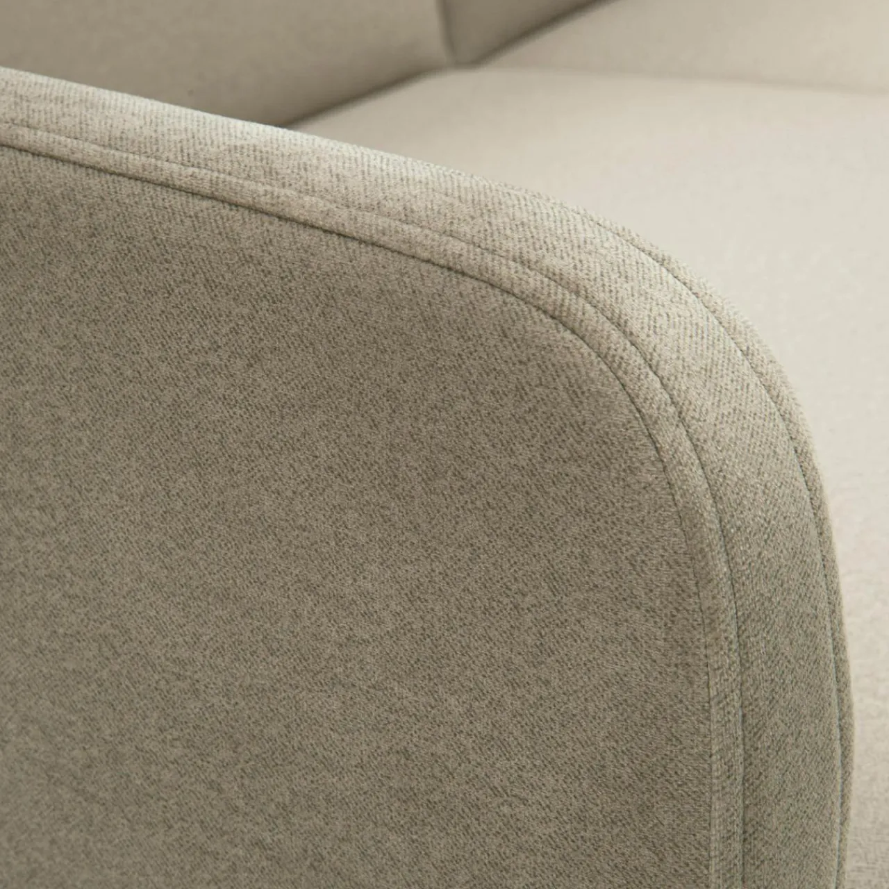 Sofa METEO została wykończona tkaniną ELEMENT w ciemnym, beżowym odcieniu.