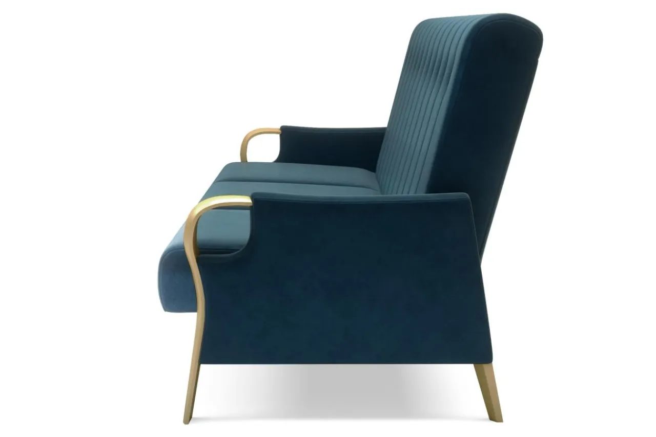 - Naturalne drewno bukowe: nóżki i podłokietniki charakteryzują się eleganckimi krągłościami, jednocześnie zdobiąc mebel swoją fakturą.