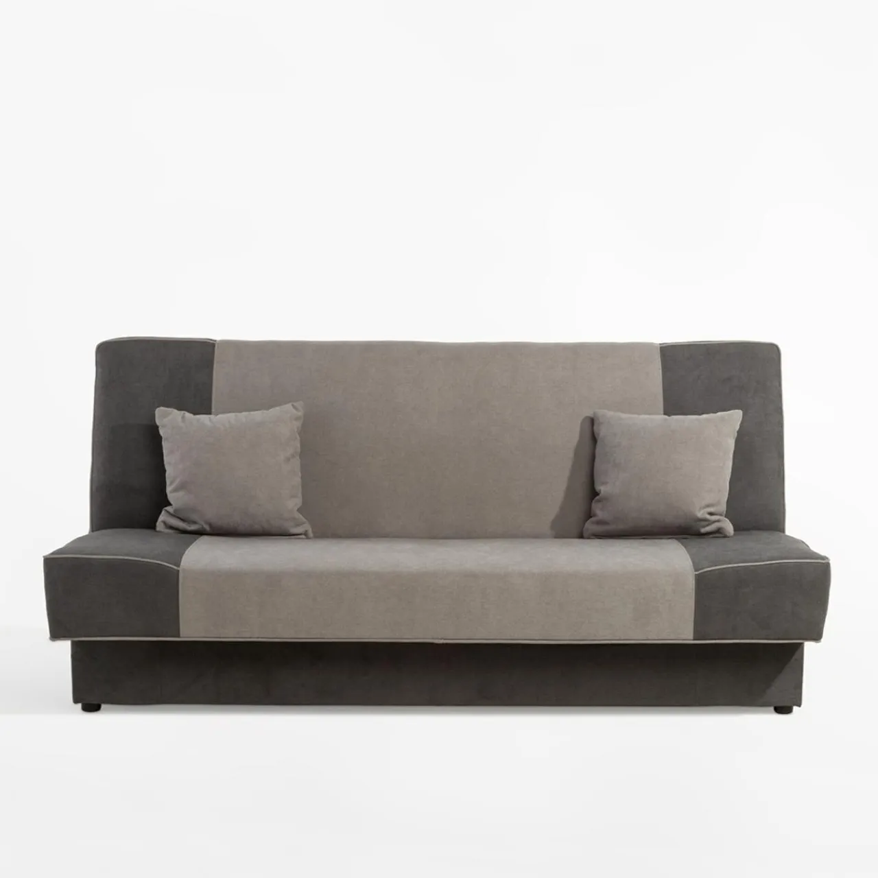 - Prosta bryła i uniwersalność – połączenie szarych kolorów sprawia, że wersalkę z łatwością wkomponujesz w nowoczesne wnętrze.
