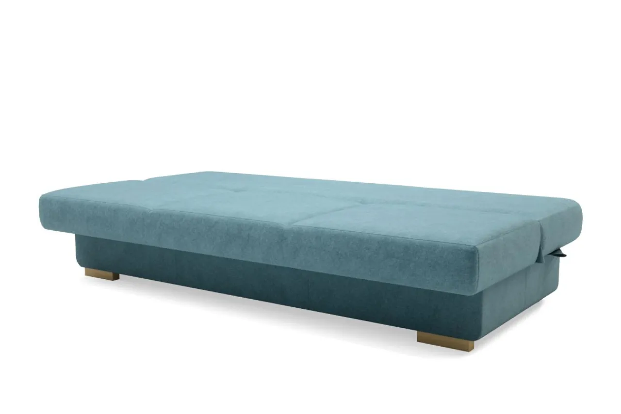 Pod siedziskiem znajdziemy pojemnik na pościel.