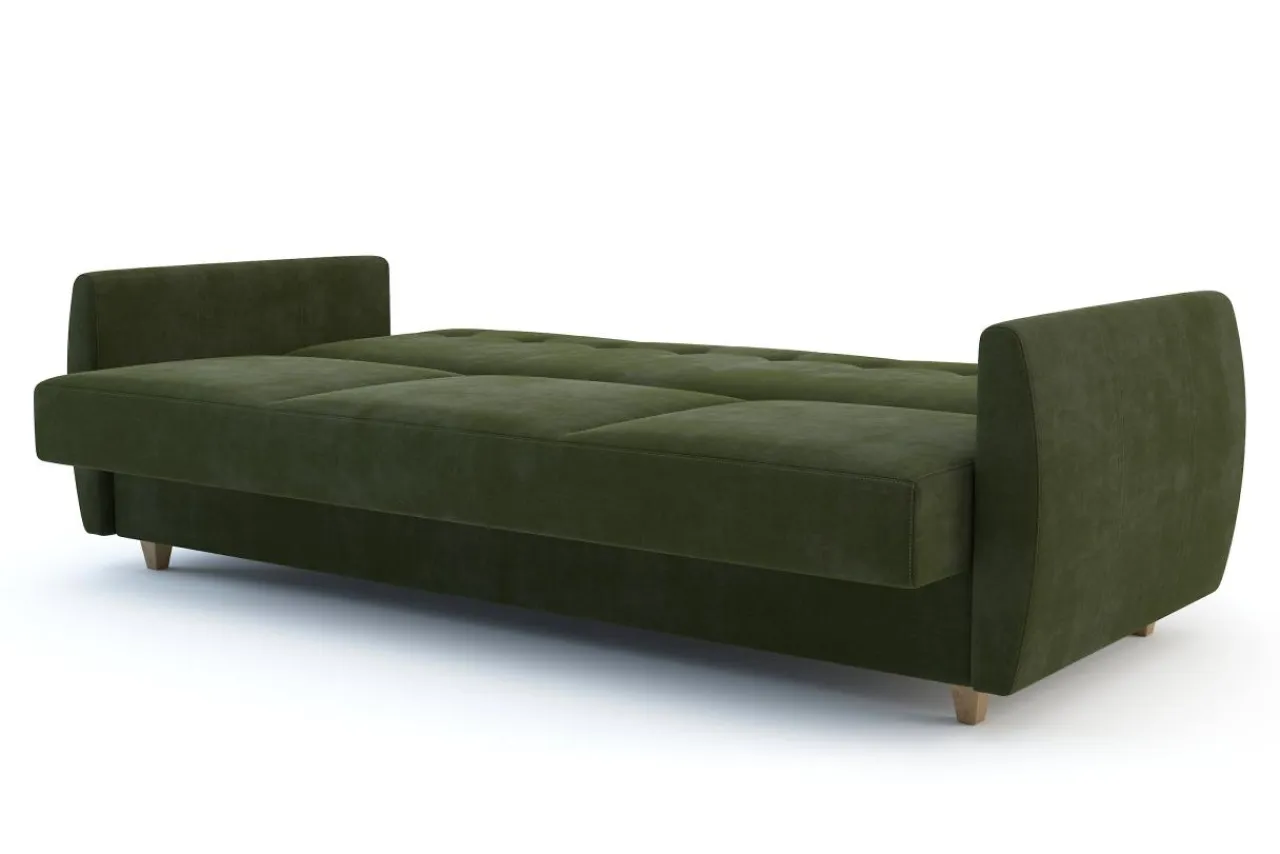 - Wersalkę pokryto przyjemnym w dotyku welwetem ZETTA w zielonym kolorze.