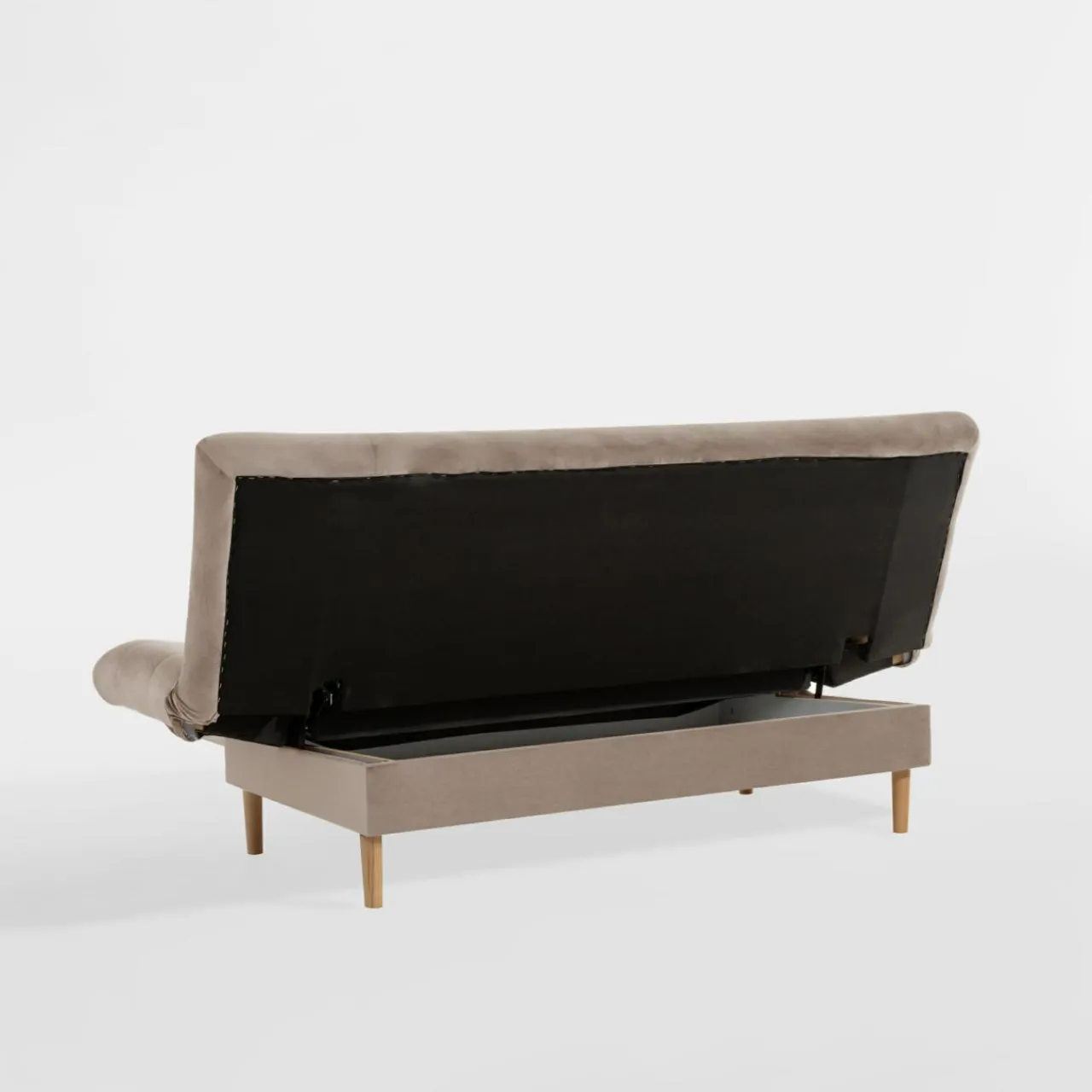 - Pojemnik pod siedziskiem to dodatkowa przestrzeń na pościel i inne domowe tekstylia. Dostęp do niego uzyskasz podczas rozkładania wersalki.