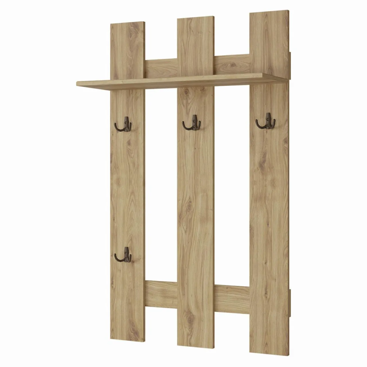 - Wieszak wykonany jest z płyty meblowej oraz pokryty laminatem.