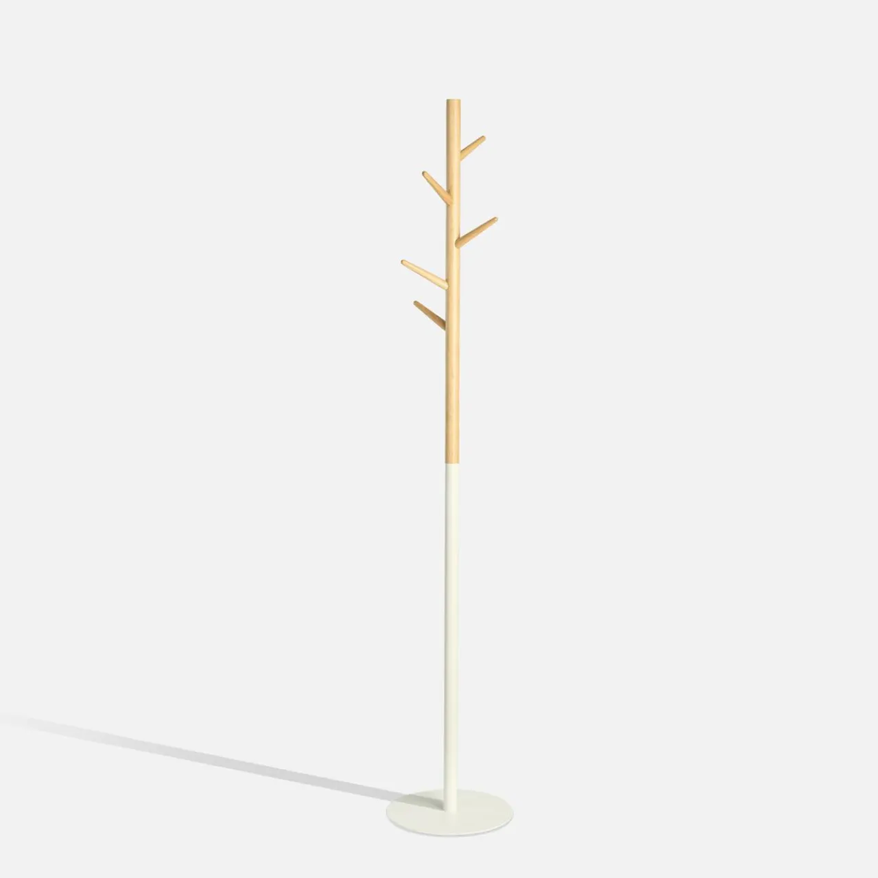 Z pewnością docenisz naturalne materiały – wieszak NANTO wykonany został z naturalnego drewna kauczukowego o jasnym wybarwieniu. Biała metalowa podstawa dodaje nowoczesnego, minimalistycznego akcentu.