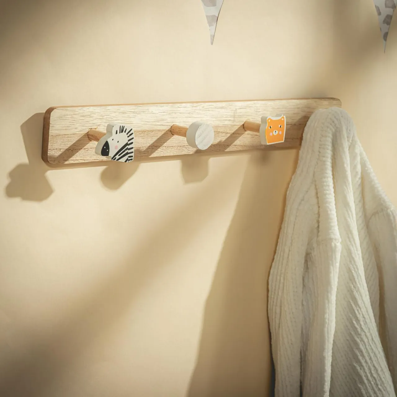 Wieszaki, Półki Tekstylne, Organizery| Drewniany wieszak ścienny ZWIERZĄTKA MIX 45×50 cm