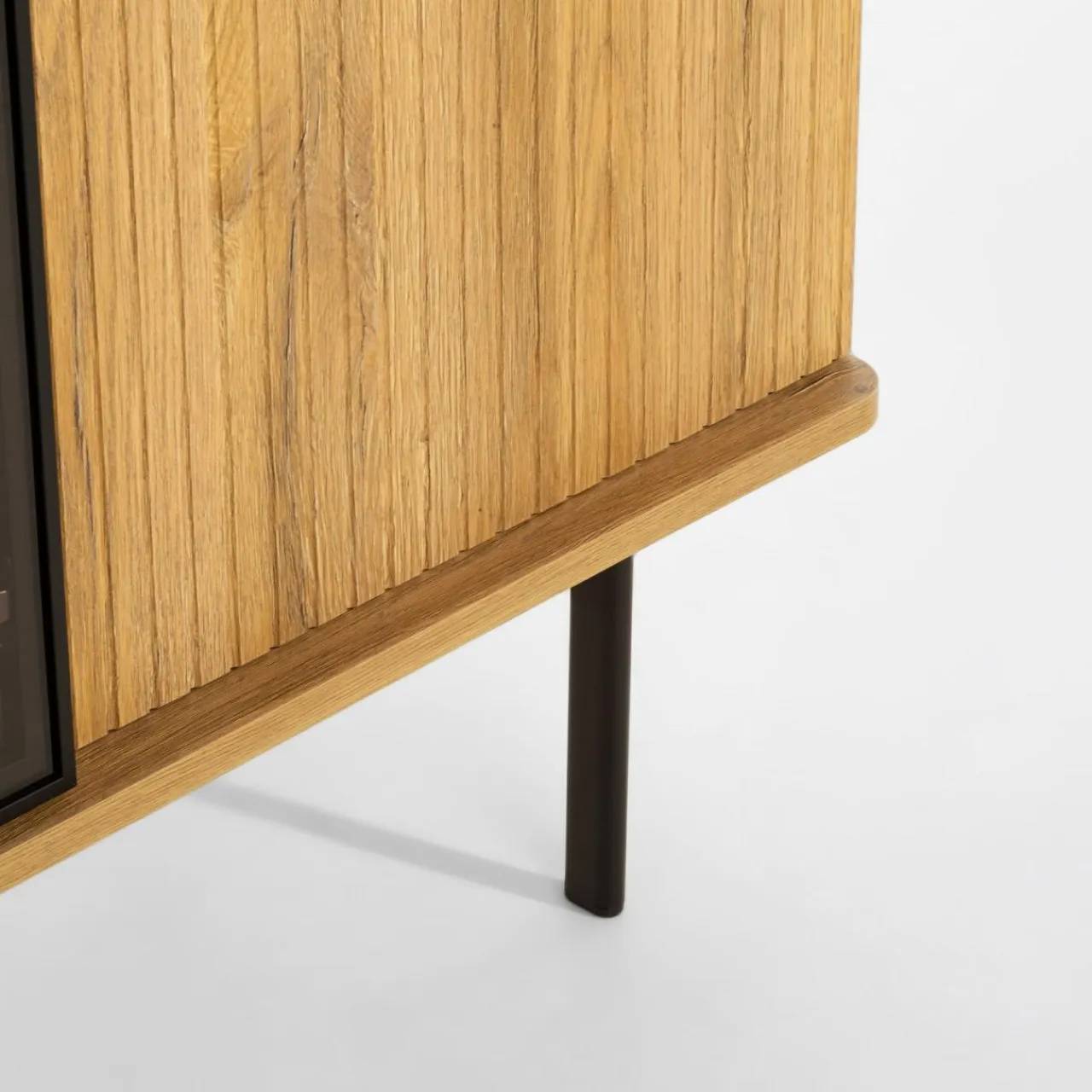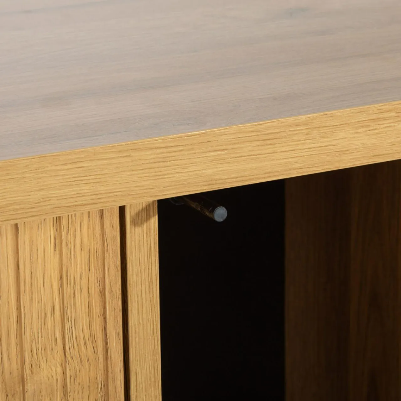 Kolekcję do salonu LUCIA wyróżnia wykończenie w imitacji jasnego dębu grandson o wyraźnym rysunku drewna, przez co zyskuje nieco retro charakter.