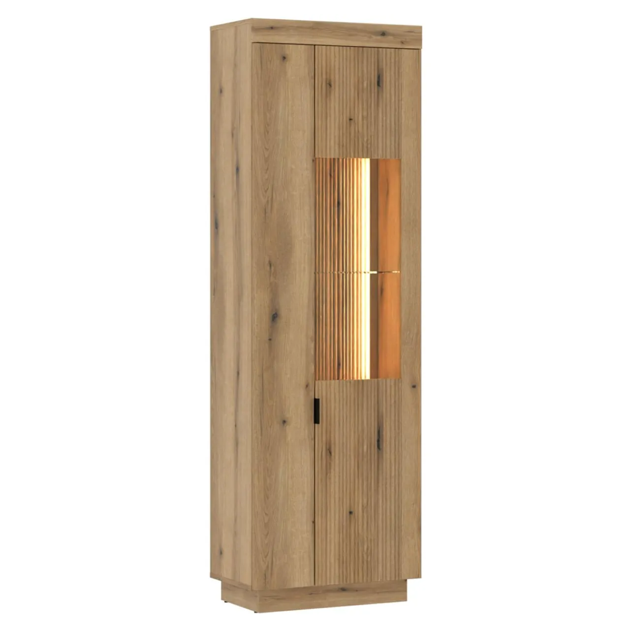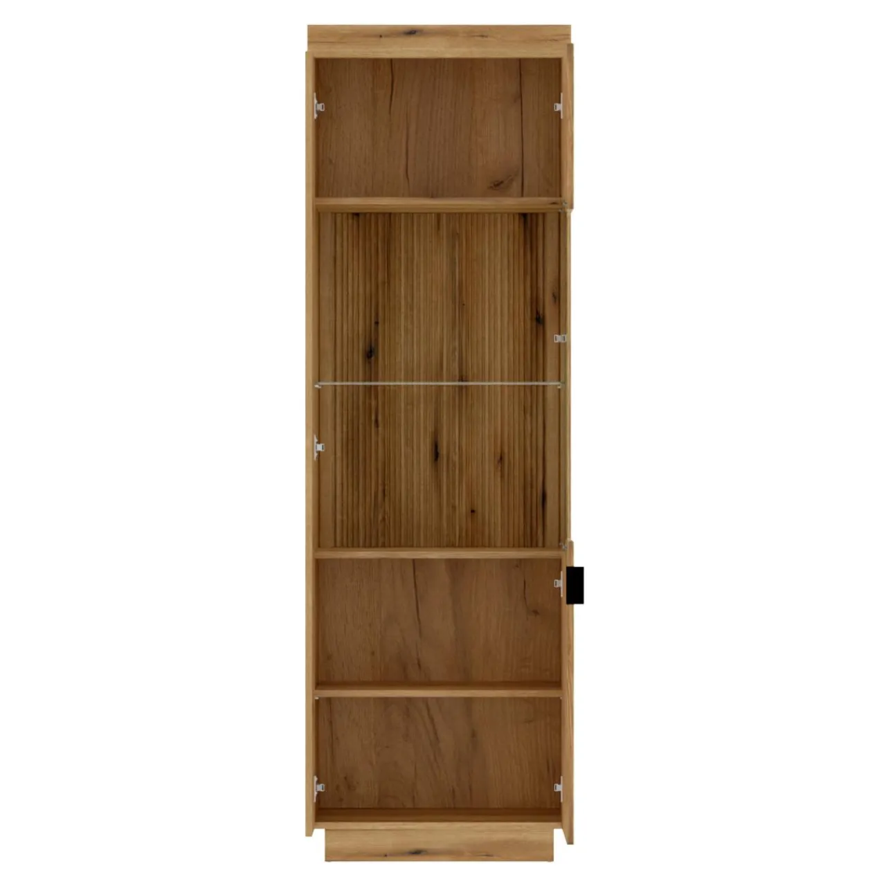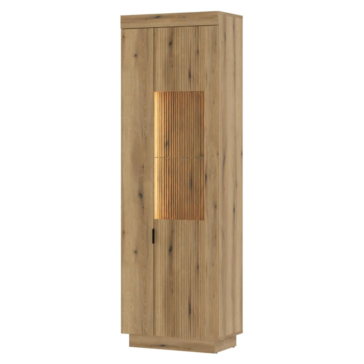 - Witryna posiada w zestawie oświetlenie o ciepłej barwie. Subtelne światło stworzy w salonie prawdziwą wystawę!