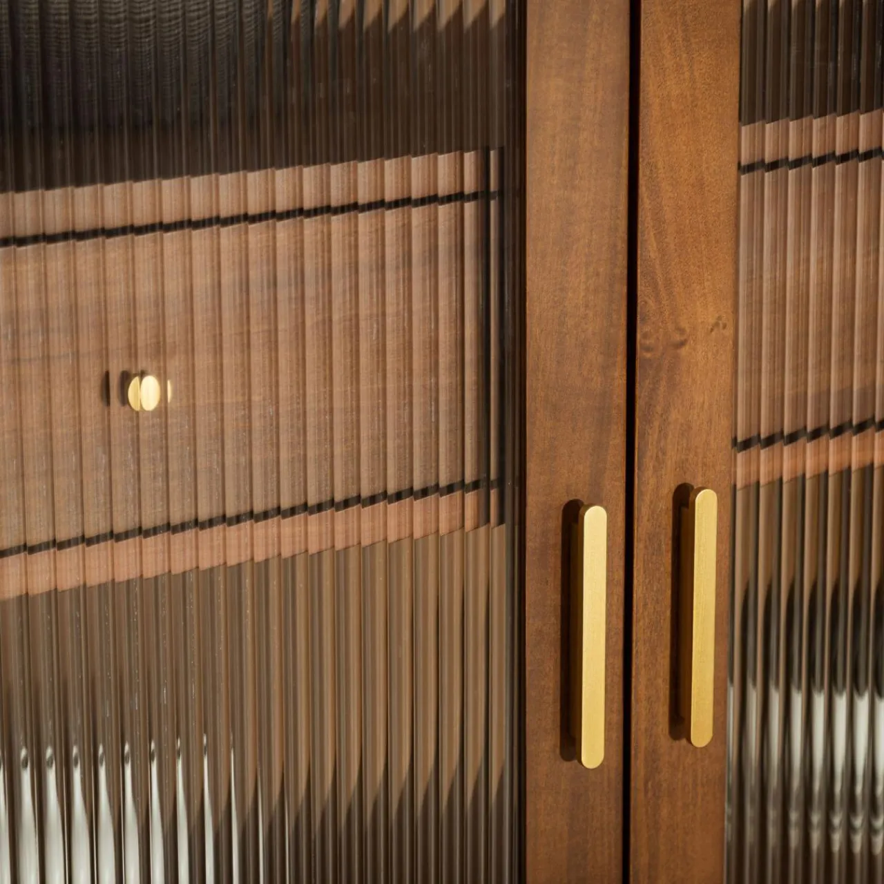 Minimalistyczne akcenty z mosiądzu w postaci uchwytów i końcówek nóżek podkreślają jakość wykonanych mebli.