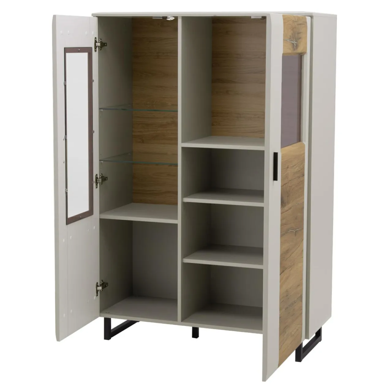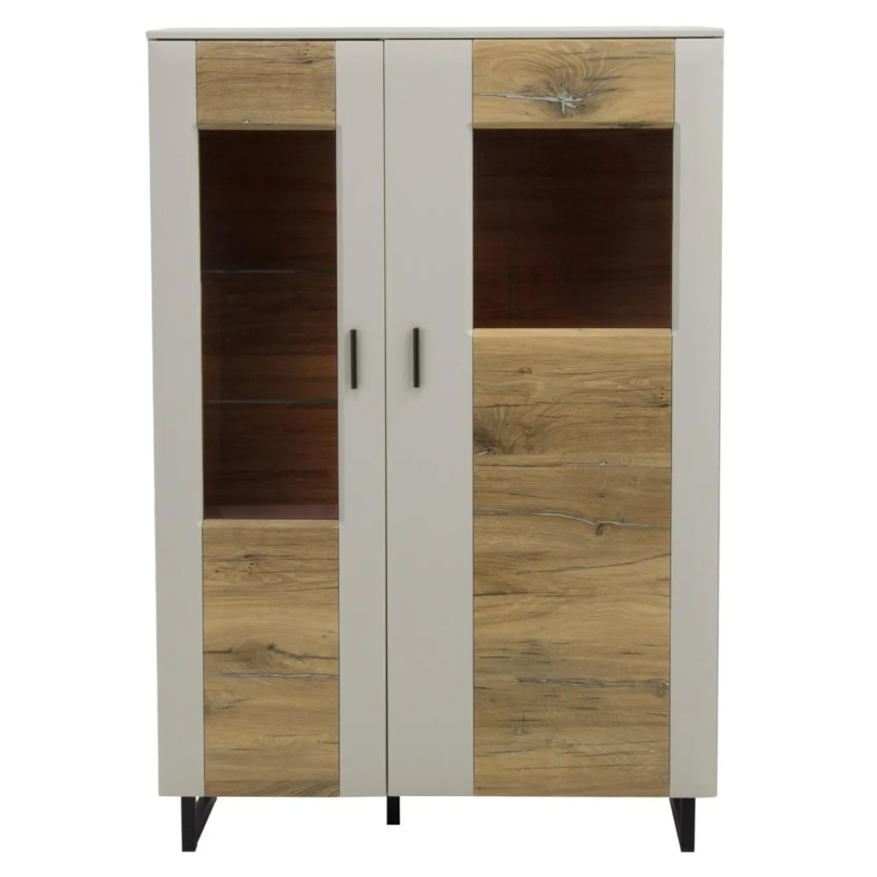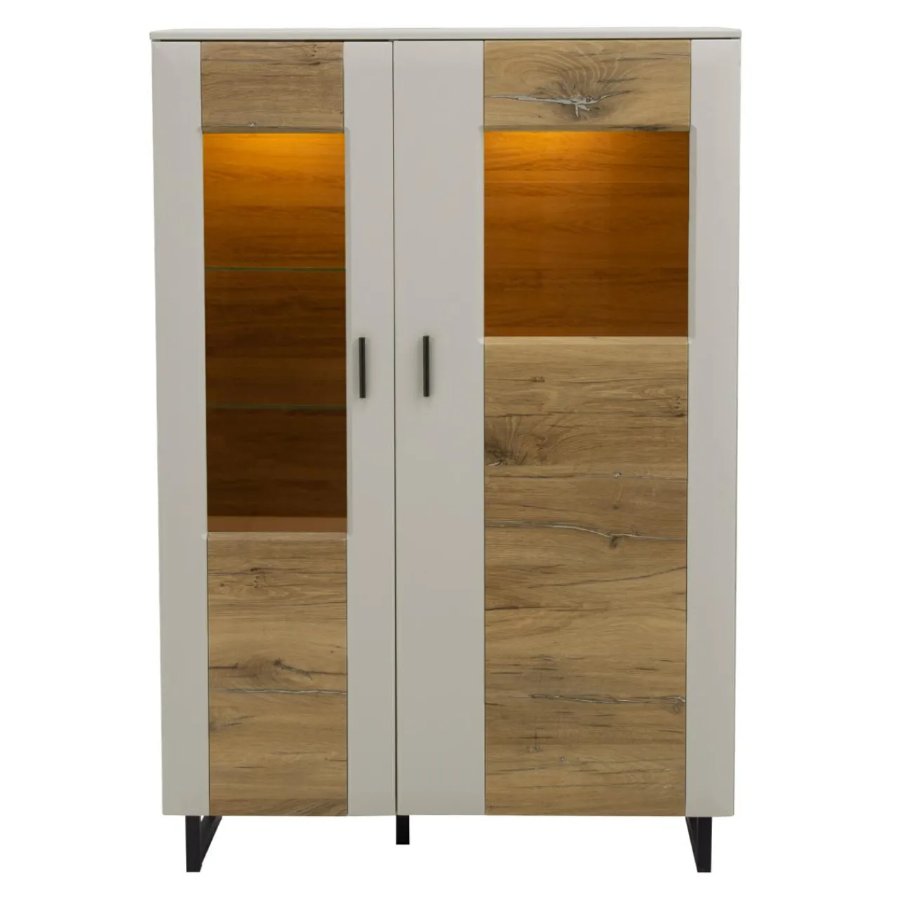 Witryna z podwójnymi drzwiami ROMY prawa + oświetlenie LED 2 pkt., białe ciepłe