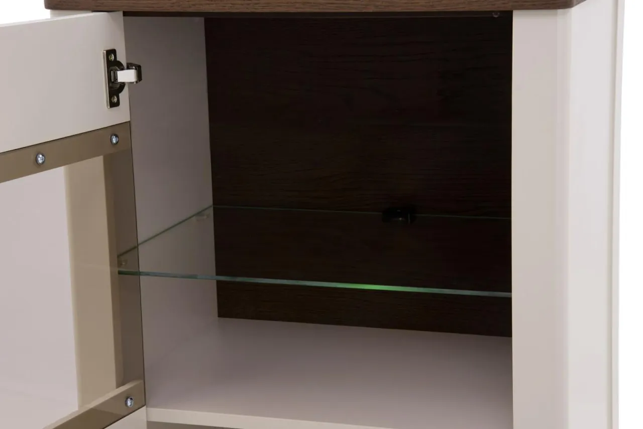 Nowoczesna witryna z oświetleniem WENECJA stanowi praktyczne uzupełnienie aranżacji salonu lub jadalni.