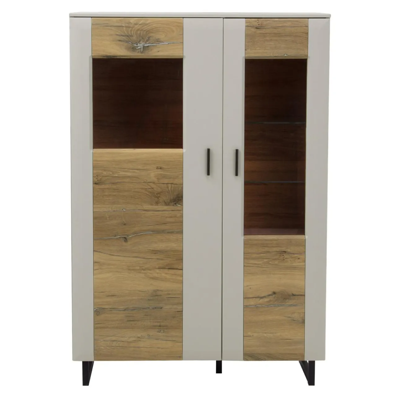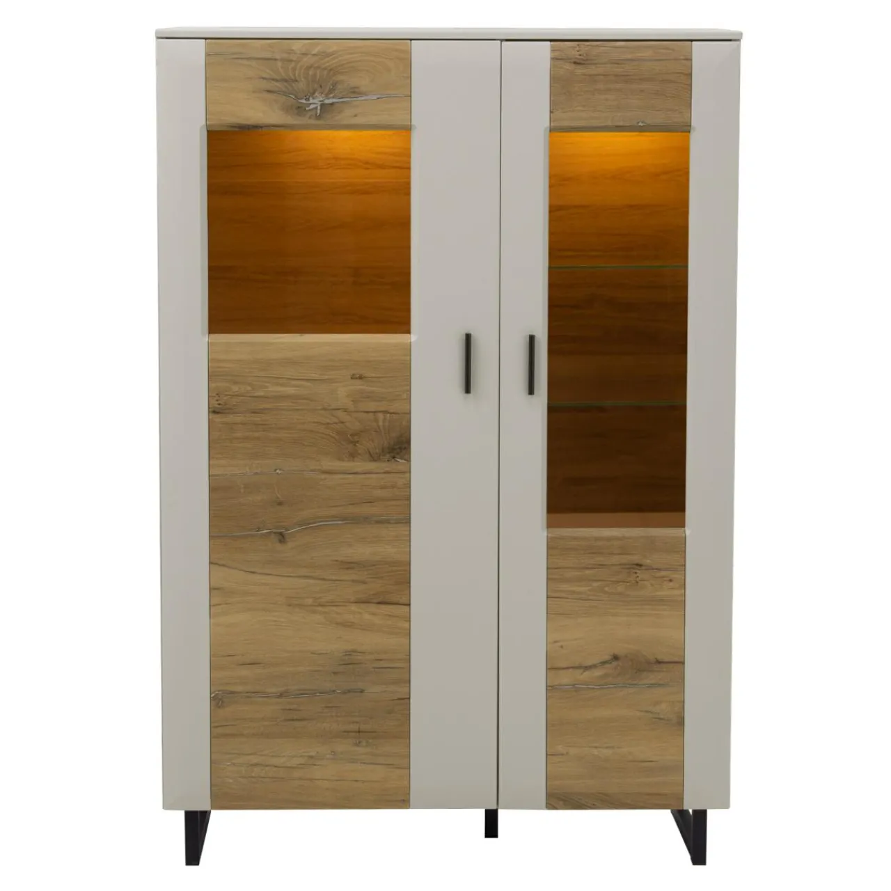 Witryna z podwójnymi drzwiami ROMY lewa + oświetlenie LED 2 pkt., białe ciepłe