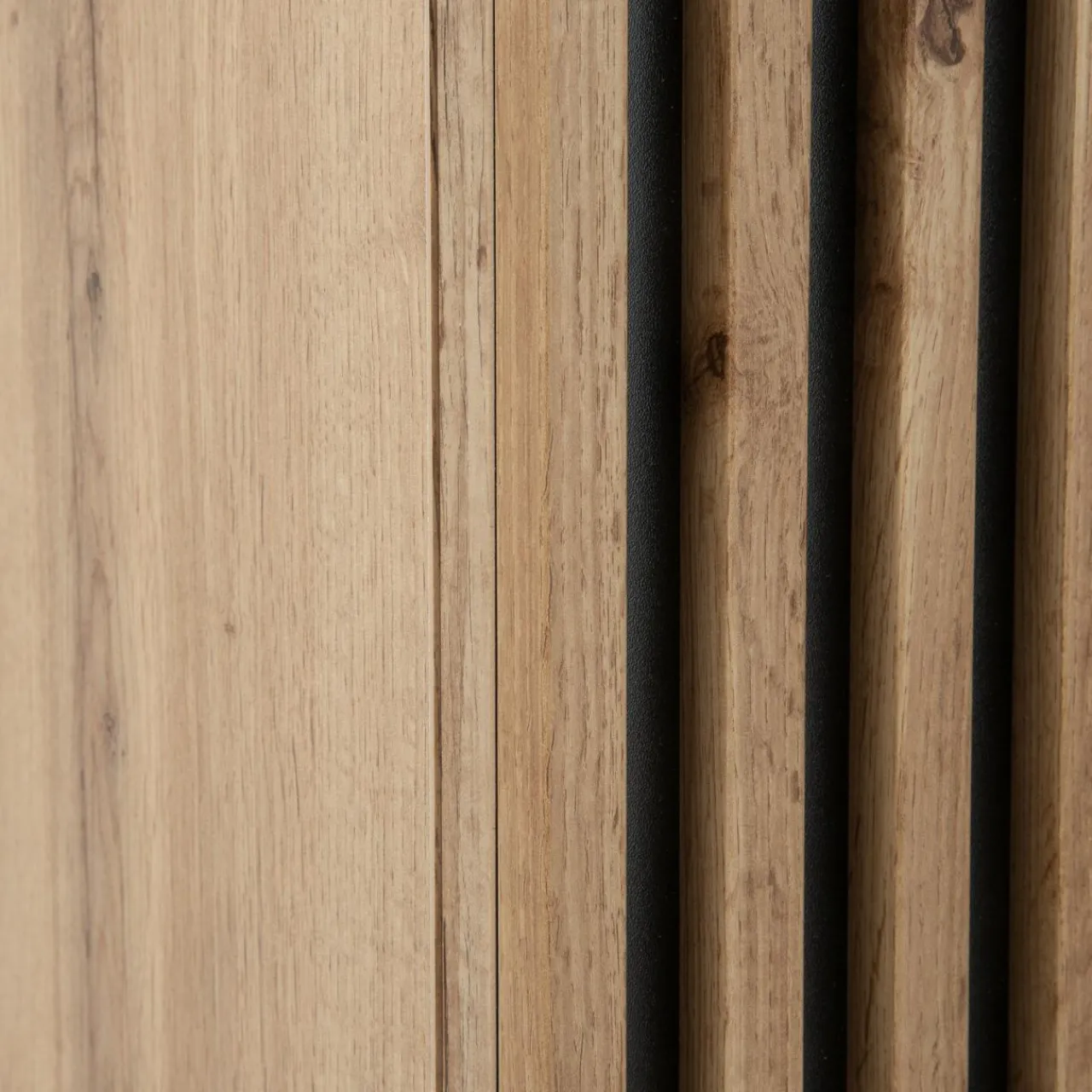 - Ciepły kolor dębu wotan, czarne, minimalistyczne fronty i ozdobne lamele – całość prezentuje się elegancko i sprawi, że Twój salon wyróżni współczesny design.