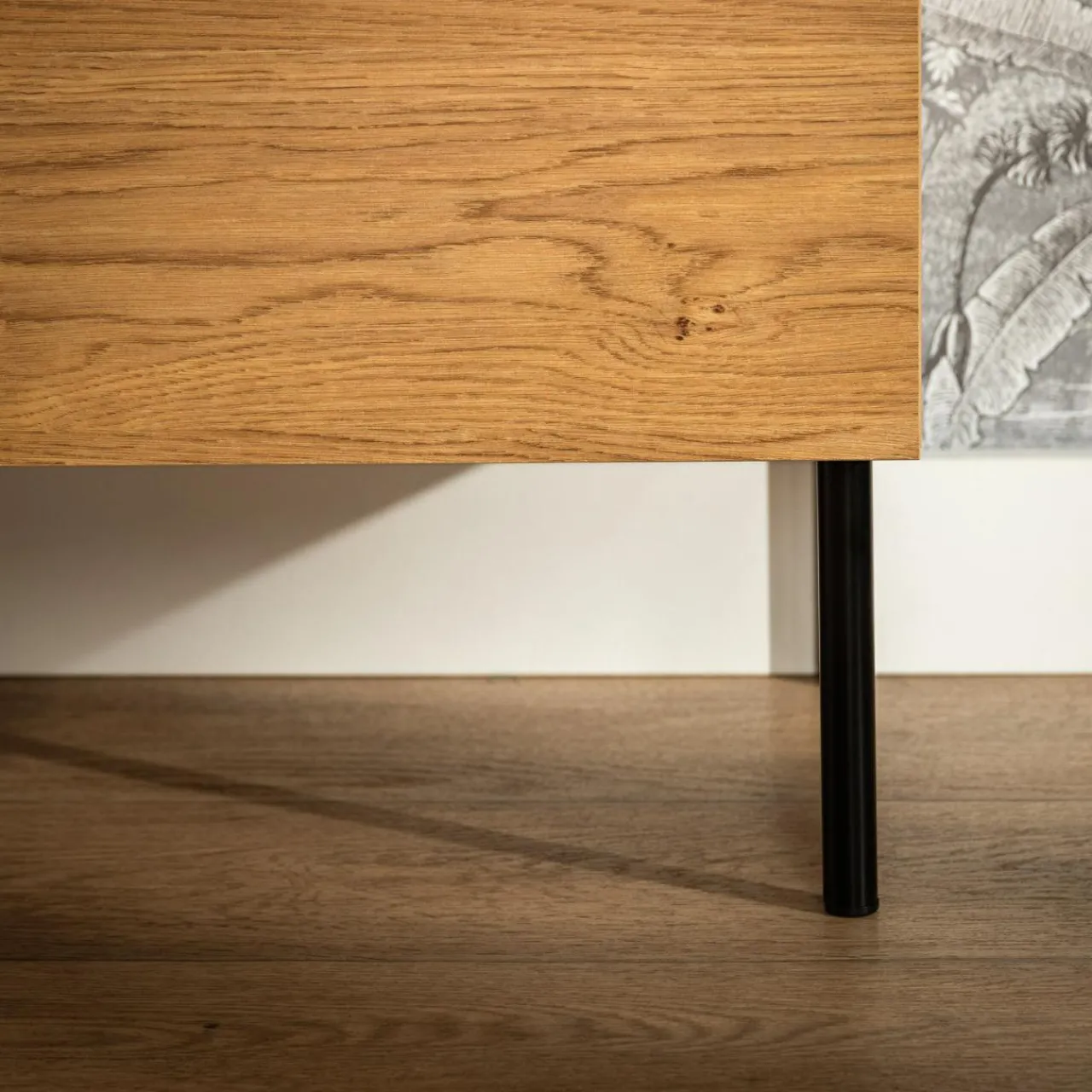 - Meble charakteryzuje wykończenie w odcieniu dębu baltic. Rysunek drewna tworzy przytulny klimat w pomieszczeniu