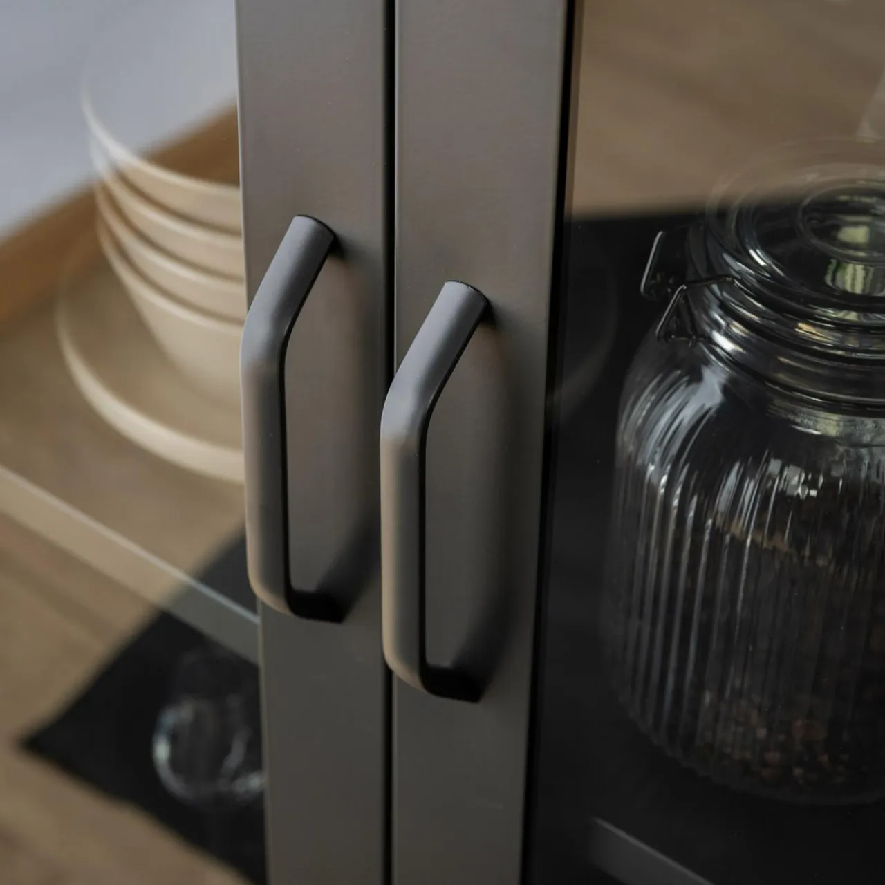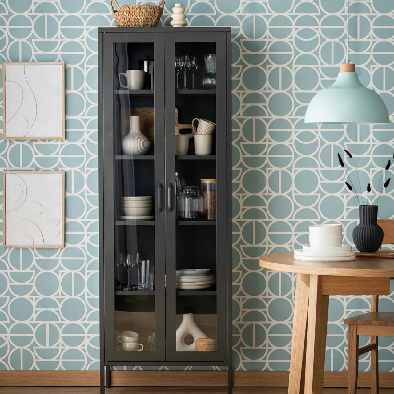 W witrynie BOUIAN wyeksponujesz zastawę obiadową, dekoracje czy książki. Będą bezpieczne przed kurzem za szklaną zabudową.