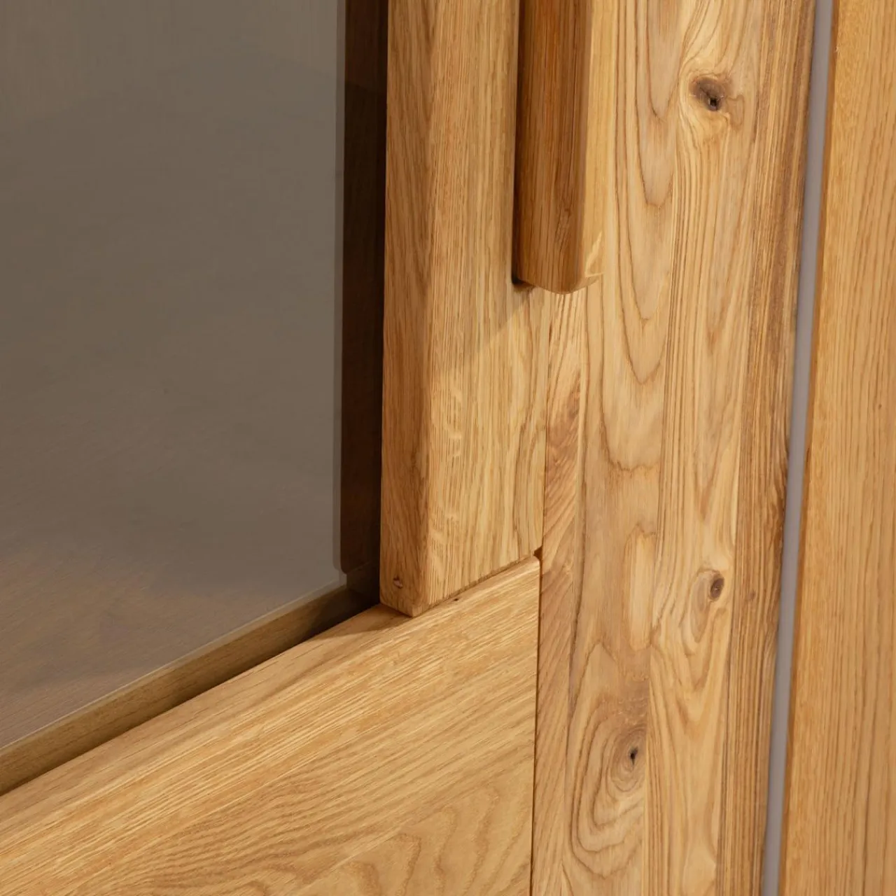 - Meble zachwycają naturalnym fornirem i prawdziwym drewnem dębowym, z którego wykonano fronty mebli.