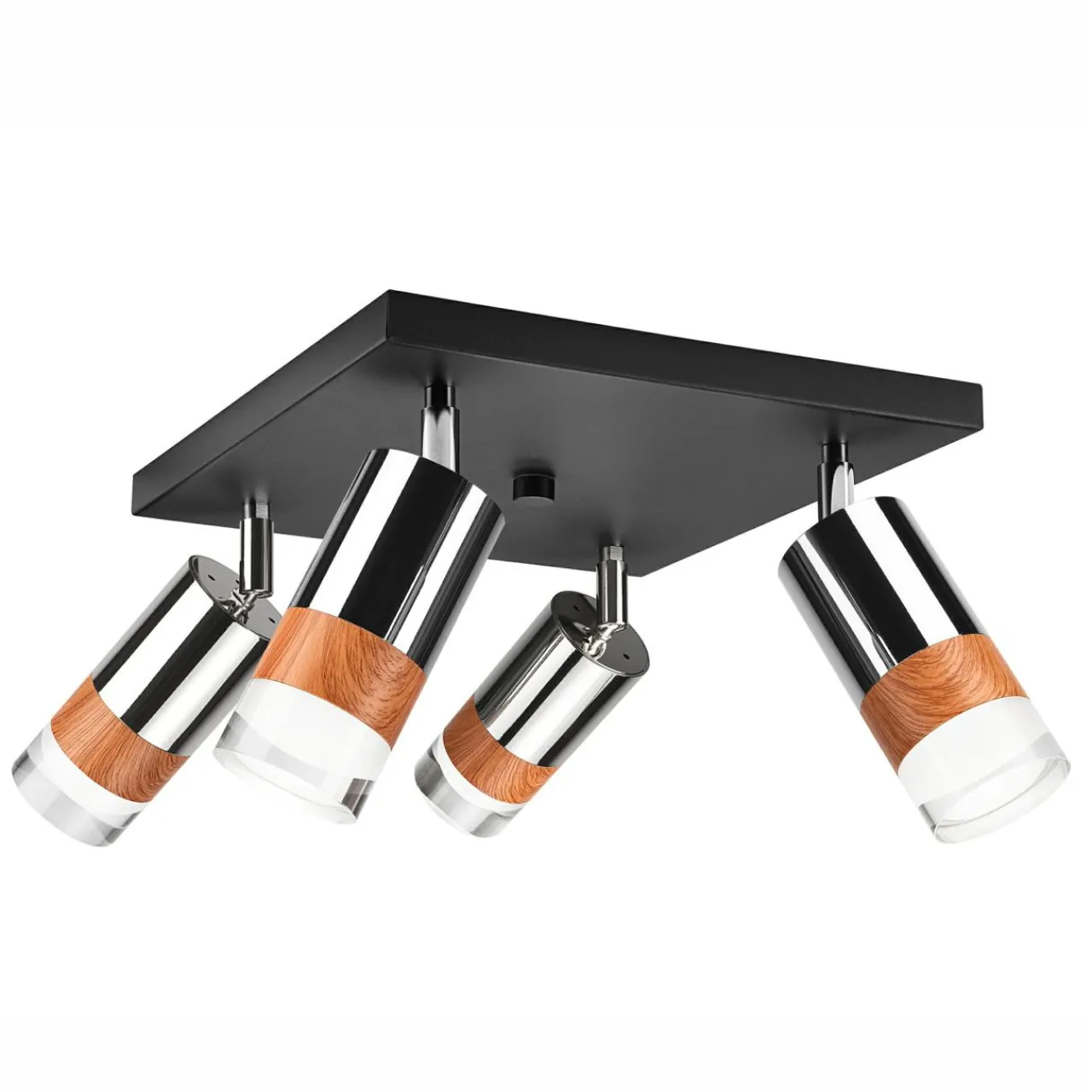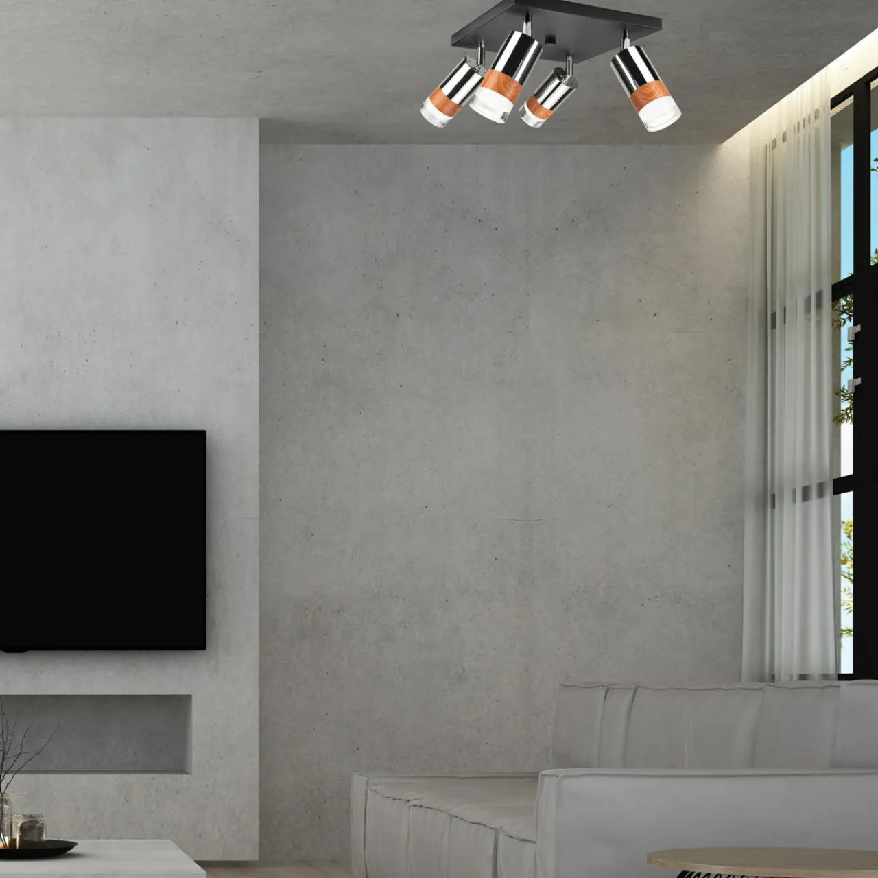 - Mocowana na suficie lampa z 4 regulowanymi reflektorkami pozwoli Ci doświetlić wnętrze jadalni lub salonu.