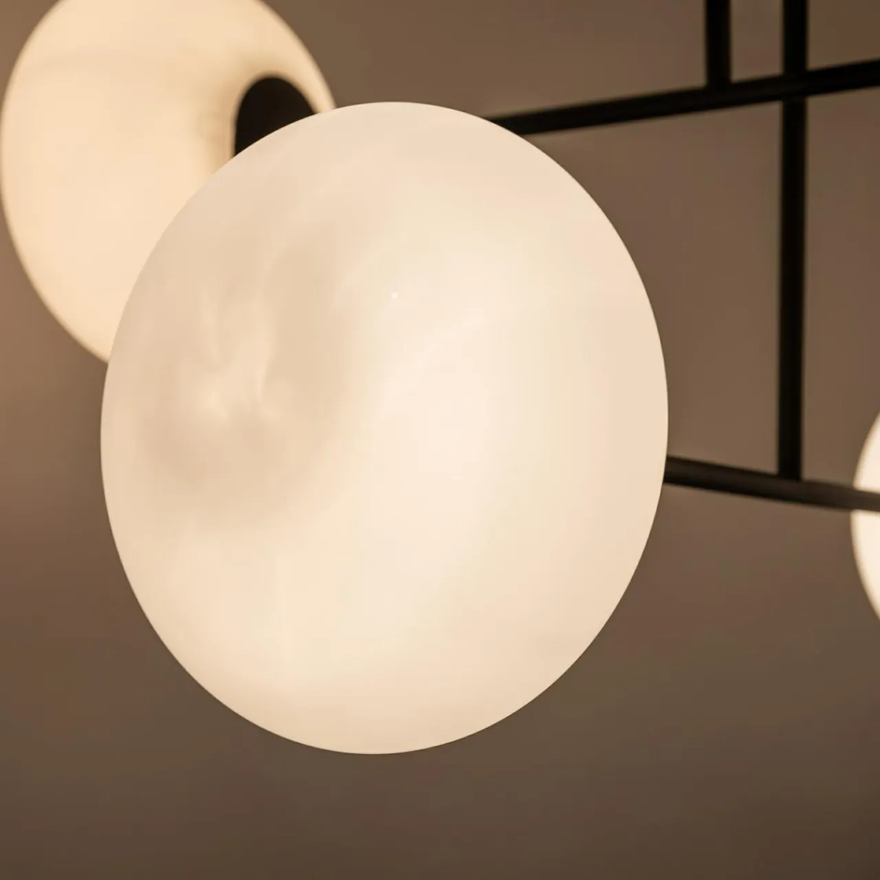Posiada ona 4 rozłożyste ramiona zakończone mlecznobiałymi owalnymi kloszami.