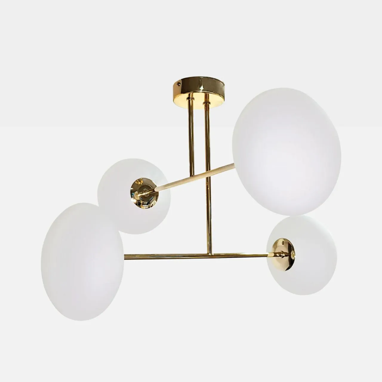 Posiada ona 4 rozłożyste ramiona zakończone mlecznobiałymi, owalnymi kloszami.
