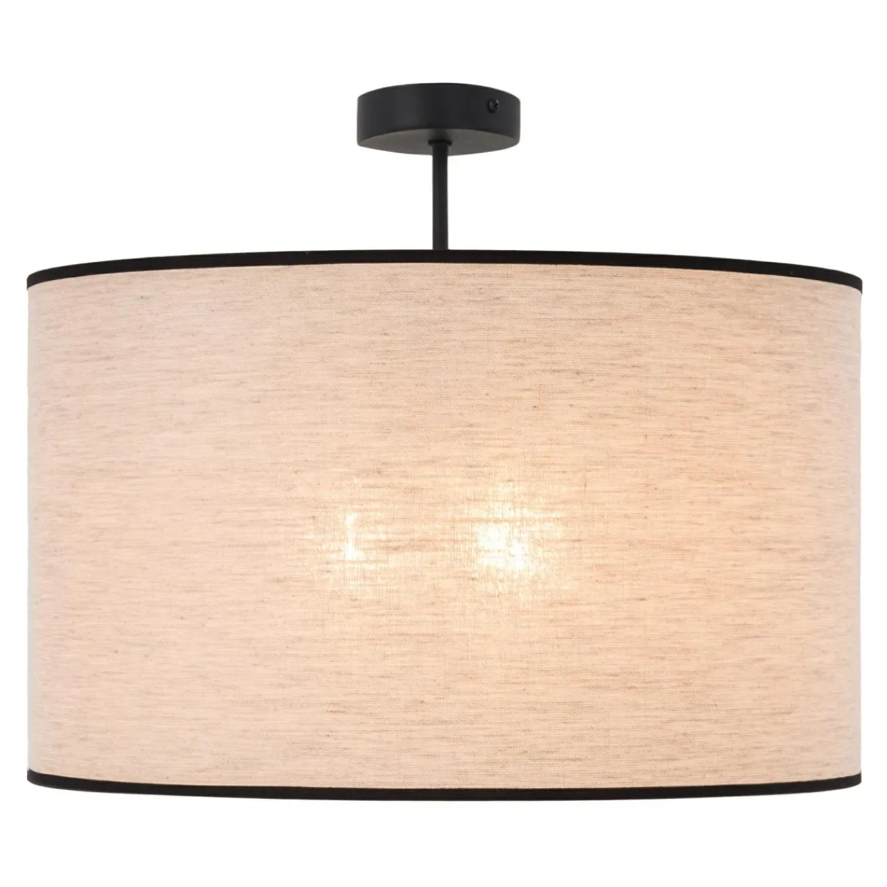 - Ciepła, przyjazna kolorystyka lampy kojarzy się z łagodnością, relaksem i wypoczynkiem. Jej odcień został skontrastowany przez lamówkę, która opasuje abażur w górnej i dolnej części.