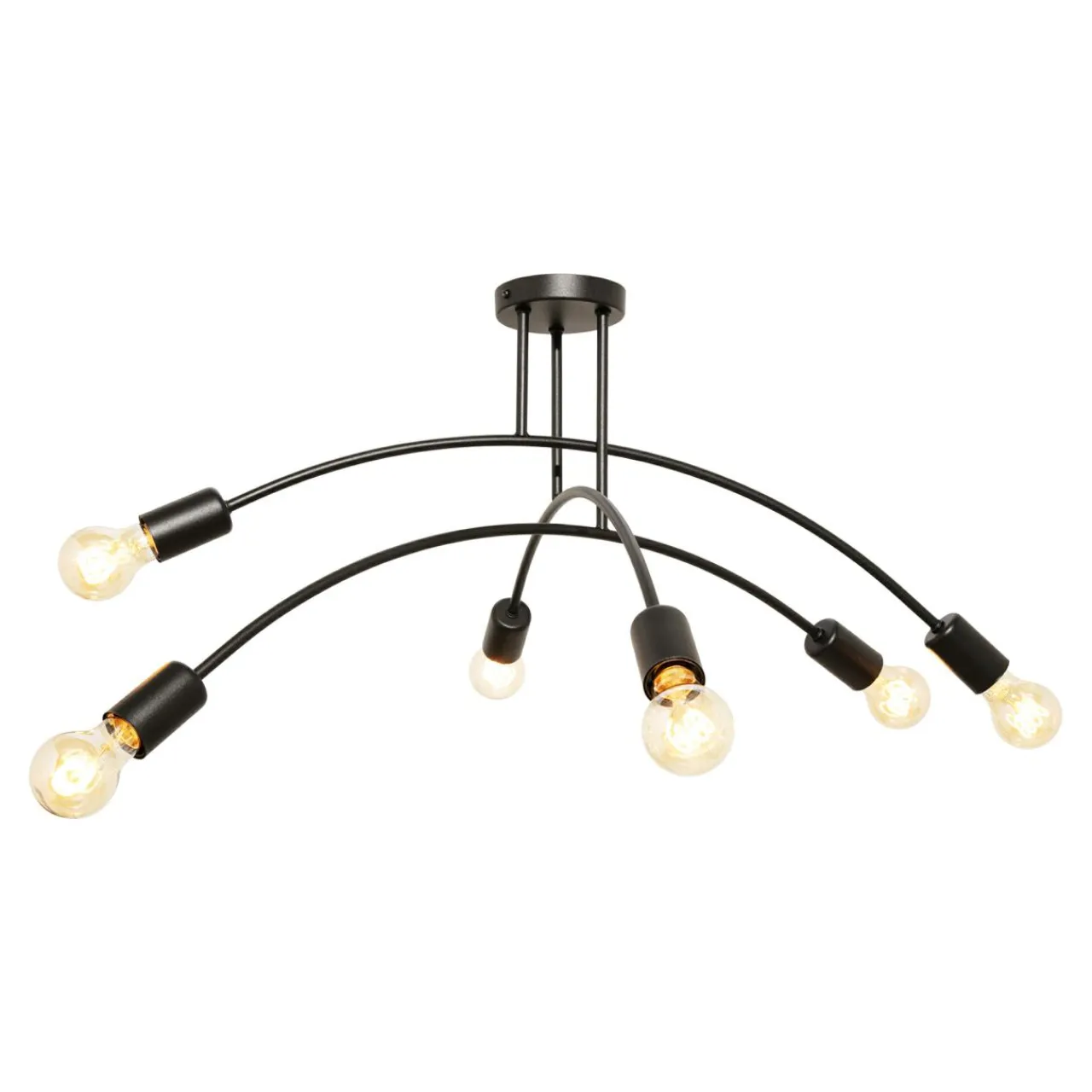 Żarówki na rozłożystych ramionach lampy to oświetlenie, które idealnie podkreśli niecodzienny styl salonu lub jadalni. Wykończenie w czarnym kolorze jest matowe i w ciekawy sposób koresponduje z ozdobnymi żarówkami.