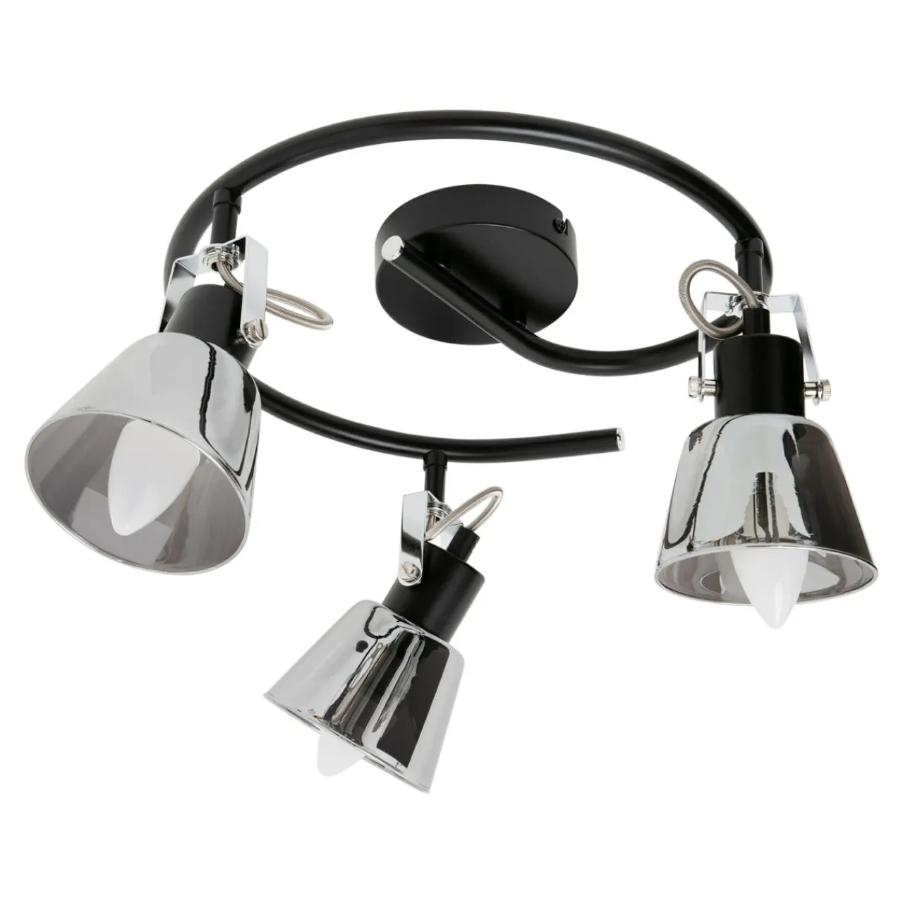 - lampa sufitowa o okrągłej podstawie i 3 reflektorkach
