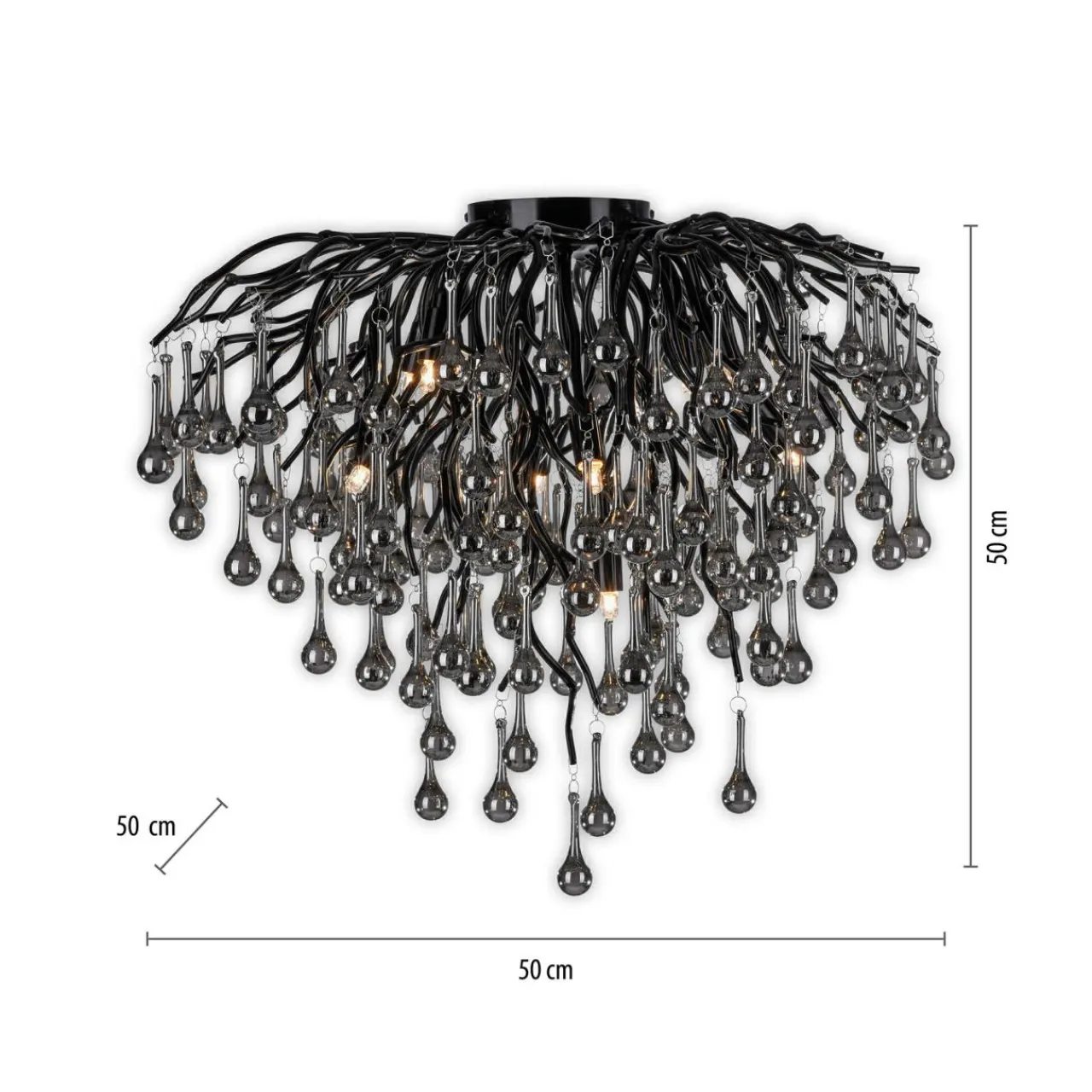 - ICICLE ma 50 cm średnicy i 50 wysokości, dlatego doskonale sprawdzi się w dużych, przestronnych wnętrzach. Konstrukcję zdobią, zwisające niczym sople lodu, kryształki ze szkła i akrylu.