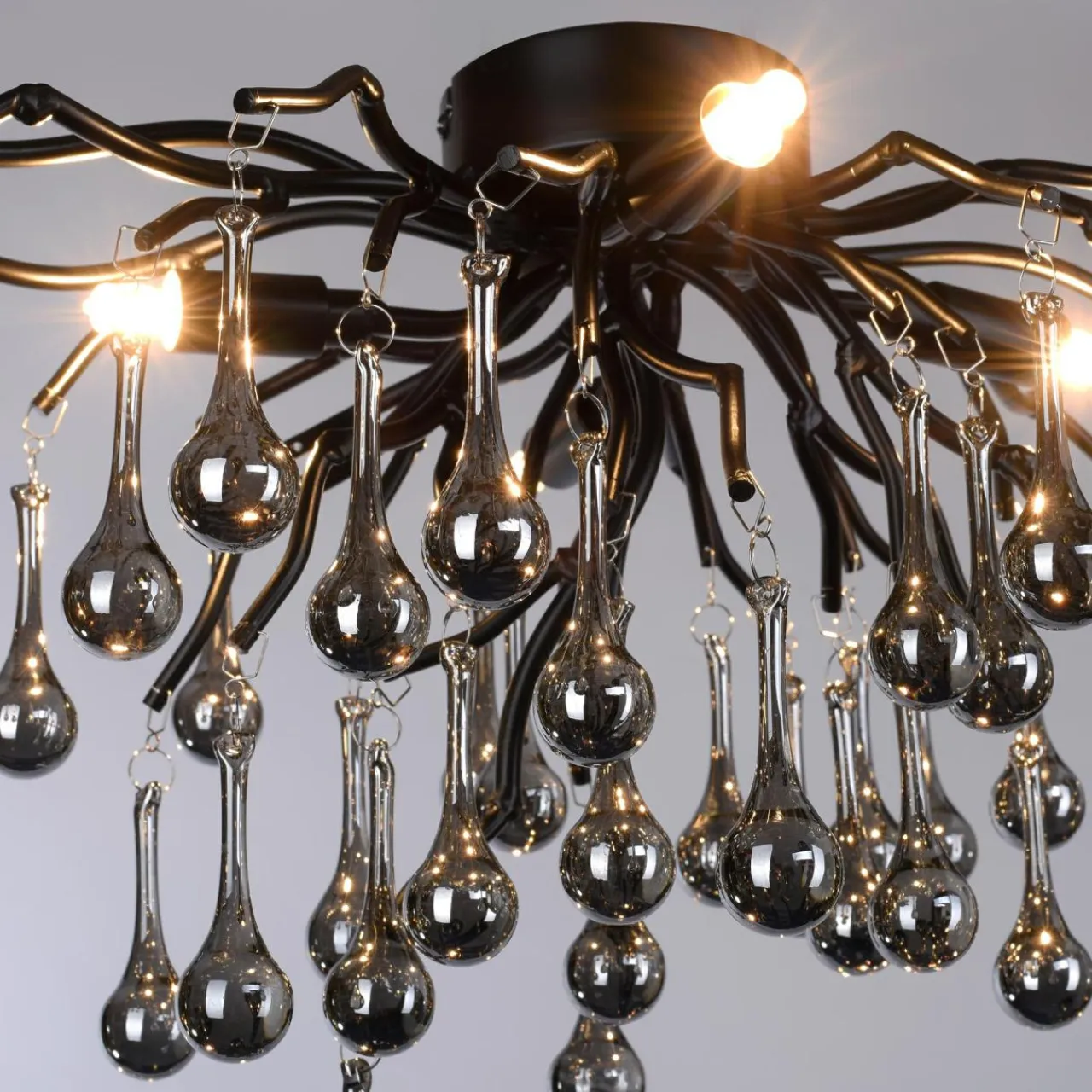 - ICICLE ma 60 cm średnicy i 35 wysokości, dlatego doskonale sprawdzi się w dużych, przestronnych wnętrzach. Konstrukcję zdobią, niczym sople lodu, kryształki ze szkła i akrylu.
