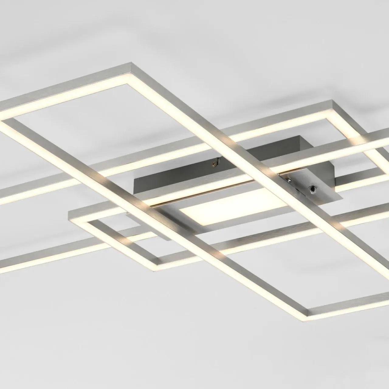 Zintegrowane z oświetleniem LED ramiona lampy można ustawić tak, by wizualnie jak najlepiej odpowiadał otoczeniu. Geometryczny design lampy, na który składają się dwie prostokątne ramki daje naprawdę wiele możliwości.