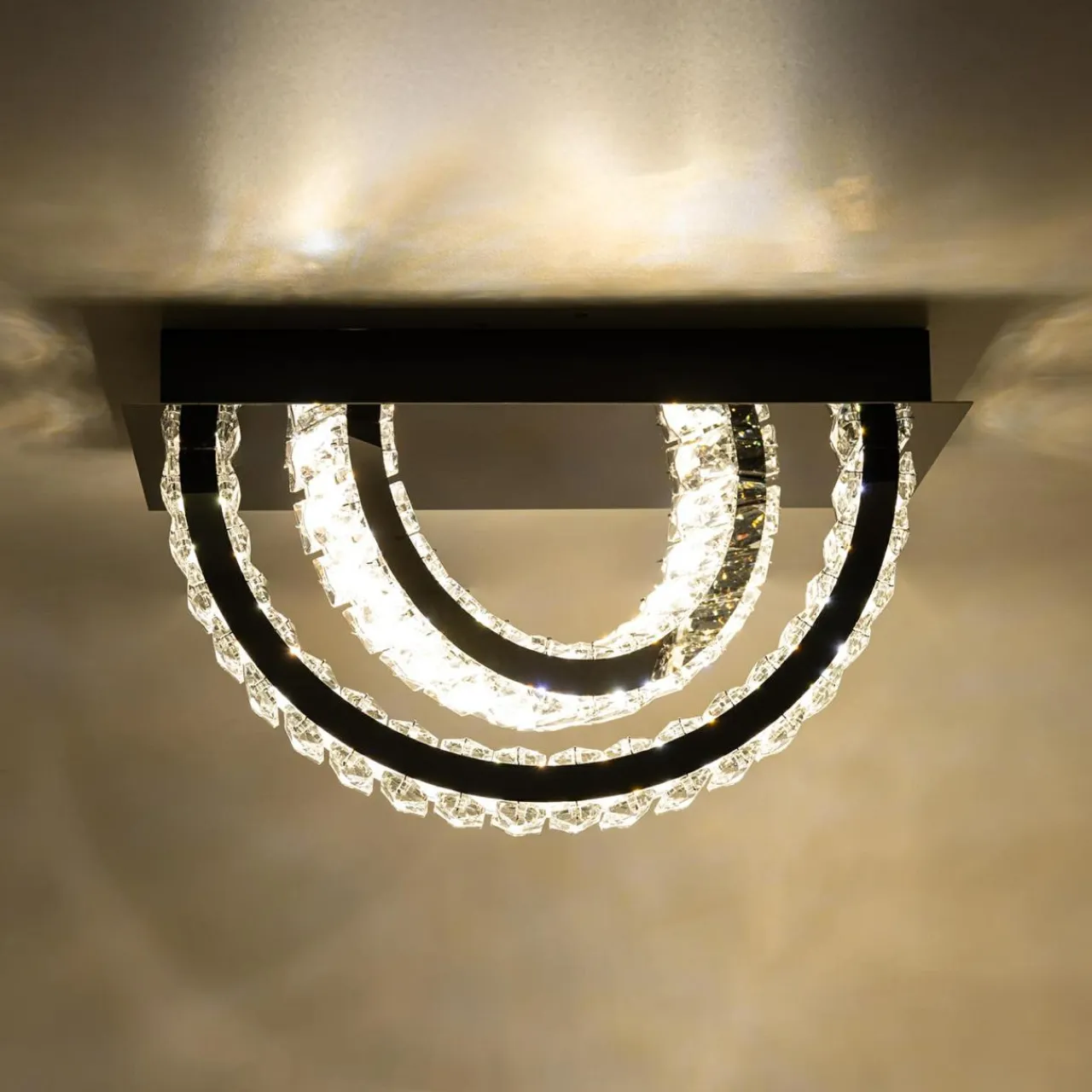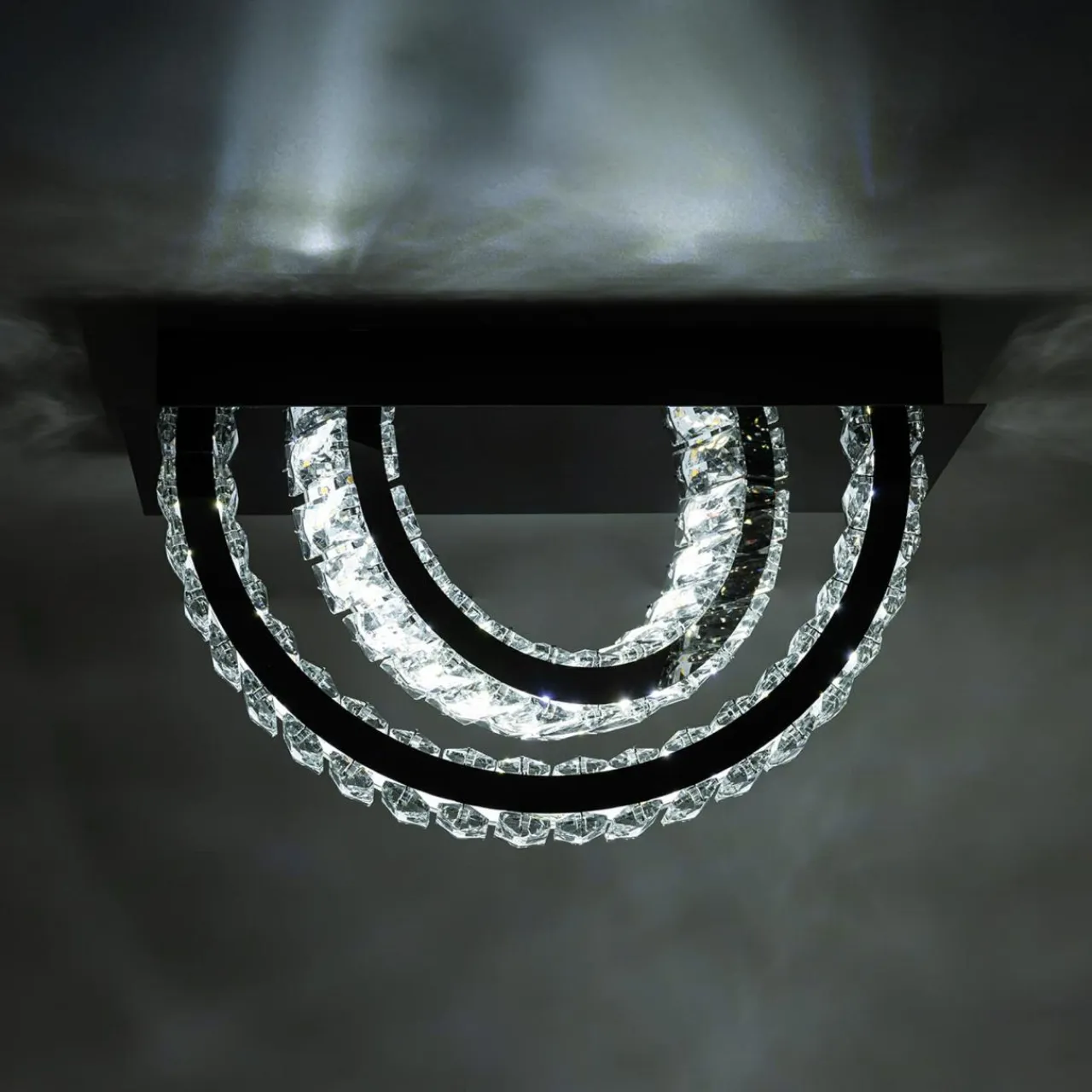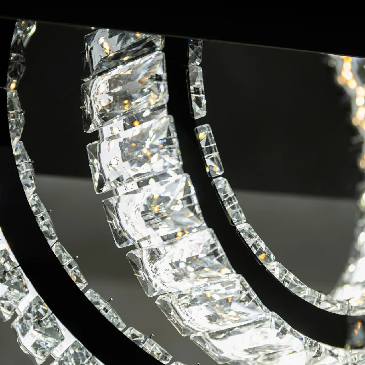 - Zestawienie czarnego wykończenia ze szklanymi kryształkami sprawia, że po zapaleniu świetlne refleksy pięknie prezentują się na ścianach i suficie.