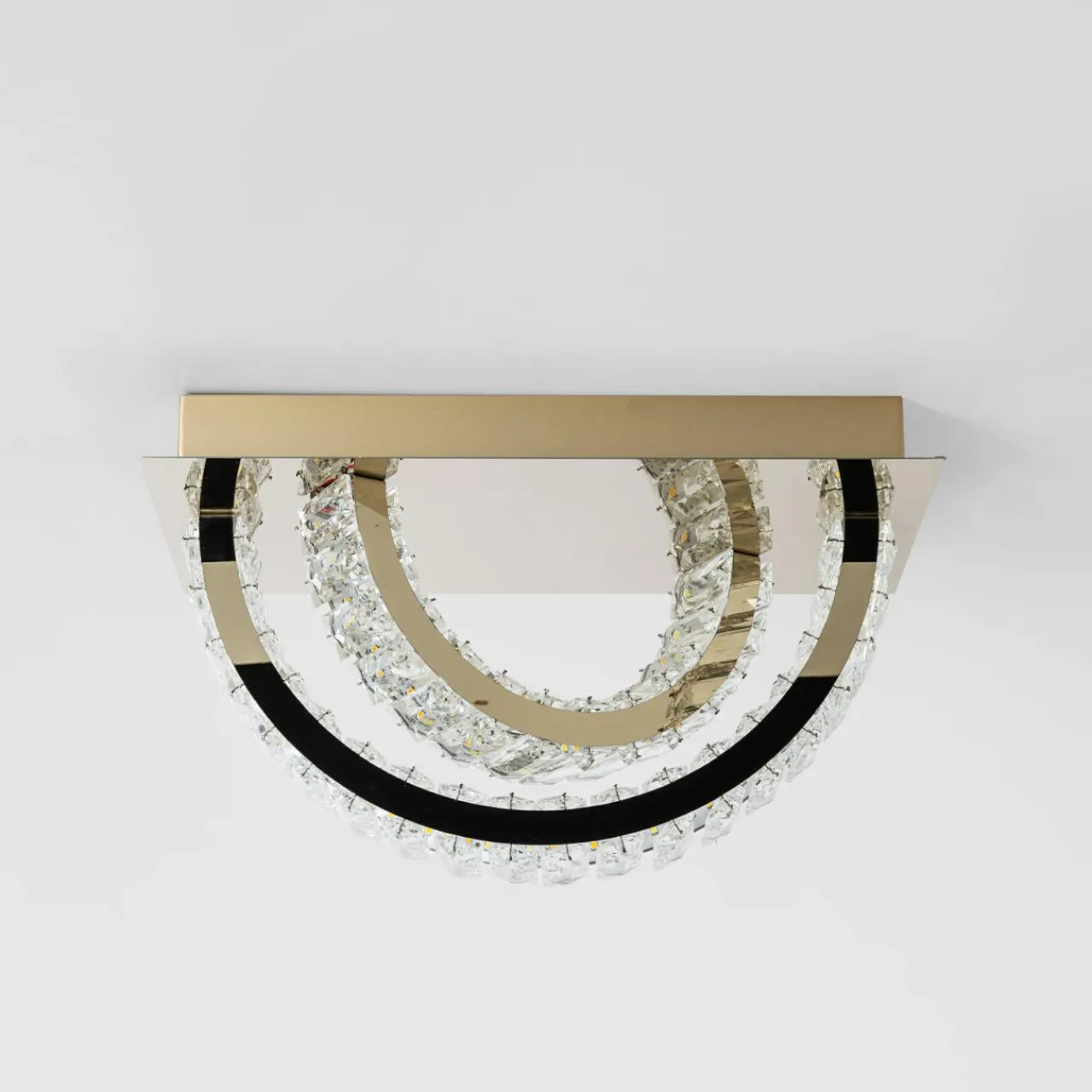 - Zestawienie złotego wykończenia ze szklanymi kryształkami sprawia, że po zapaleniu świetlne refleksy pięknie prezentują się na ścianach i suficie.