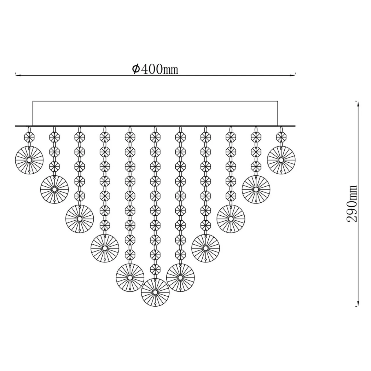 Na uwagę zasługuje również duża różnorodność szklanych kryształków. Kształty kół, sopli i paciorków połączone delikatnymi łańcuszkami tworzą ciekawą, przyciągającą wzrok kompozycję.